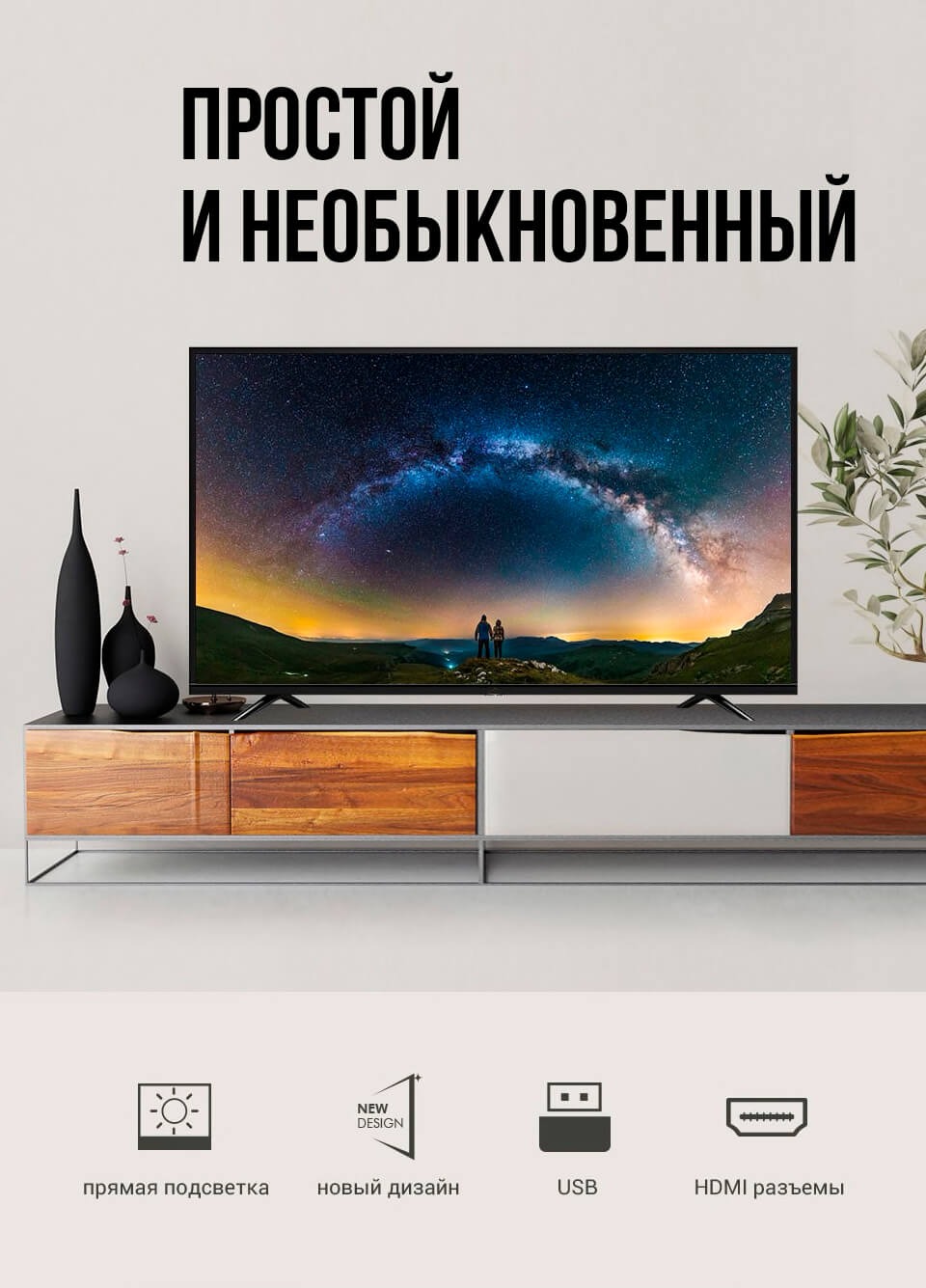 Откройте для себя интеллектуальные возможности этого телевизора.Телевизор оснащен качественной матрицей с хорошими углами обзора. Картинка на экране – четкая, живая и реалистичная. Устройство легко воспроизводит файлы с разрешением FullHD.(на коробке 4К)