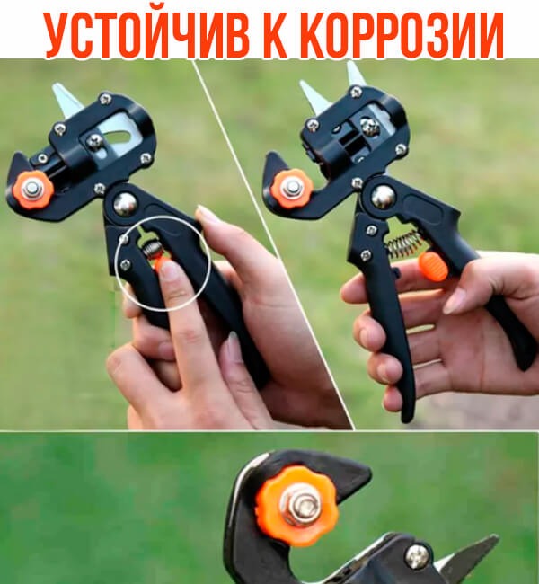 - Ω - образный нож, с двухсторонней заточкой, для самого крепкого соединения подвоя и привоя.