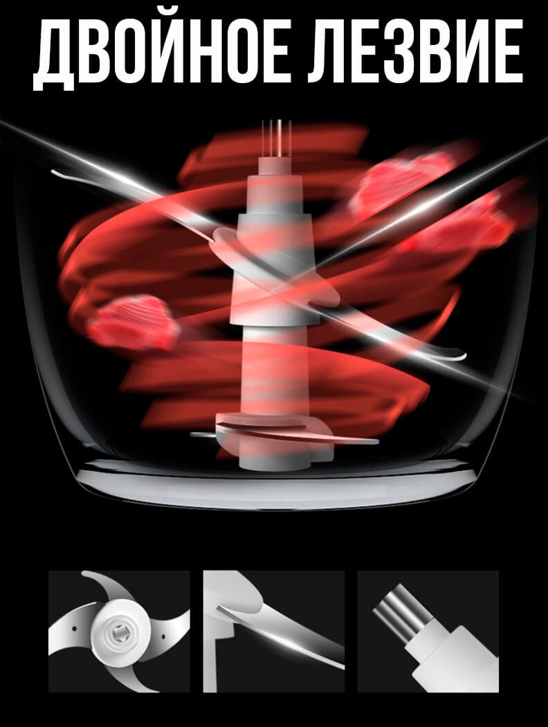 Измельчитель может справиться с любыми задачами. Он нарезает, измельчает, перемалывает и доводит ингредиенты до состояния пюре. Просто нажмите кнопку, и прибор за считанные секунды нарежет овощи, фрукты, сыр, мясо или орехи. Готовьте супы, салаты, соусы, детское питание, десерты, и даже коктейли! Измельчитель с двухъярусным лезвием обладает компактными размерами, поэтому он не займет много места у вас на кухне.