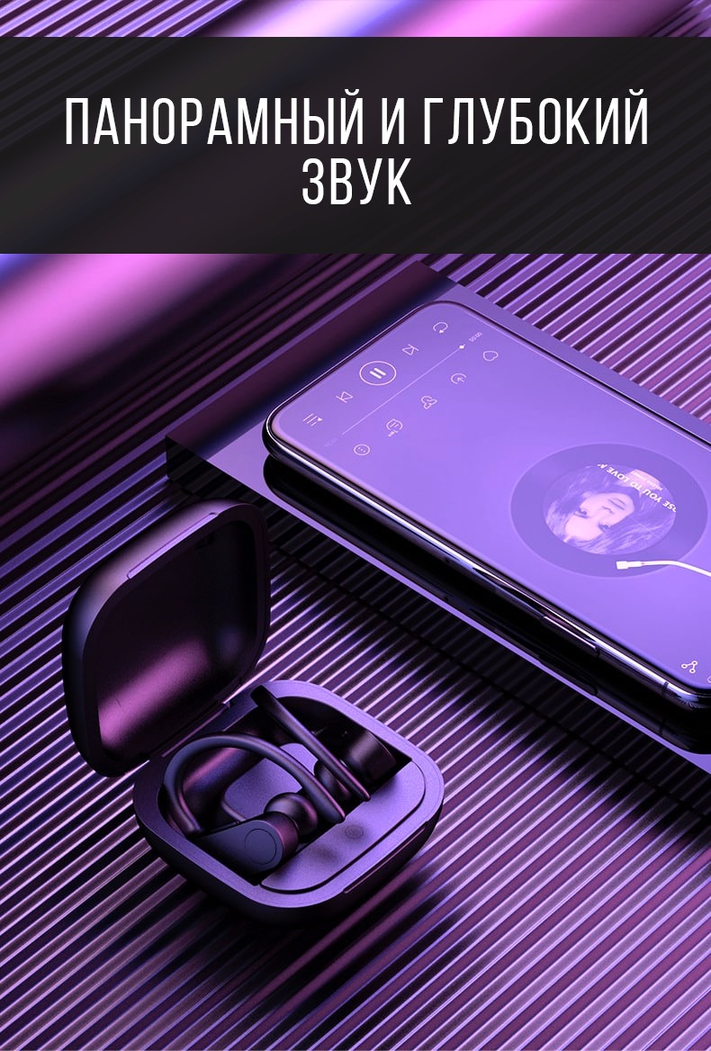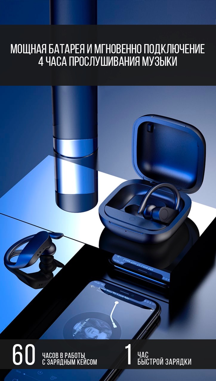 Полностью беспроводные наушники с зарядным кейсом Play9 Sport - высококачественные наушники для занятий спортом и повседневной жизни. Великолепный звук и эргономика. Bluetooth 5.0.