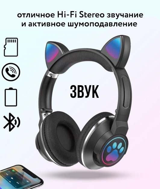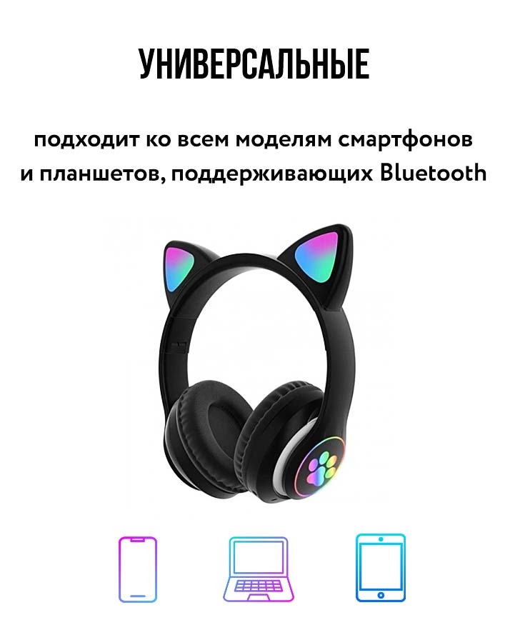 Беспроводные Bluetooth стерео наушники с кошачьими LED ушками - это настоящий хит современной моды, популярный тренд для стильных и продвинутых людей, которые любят быть в центре внимания!