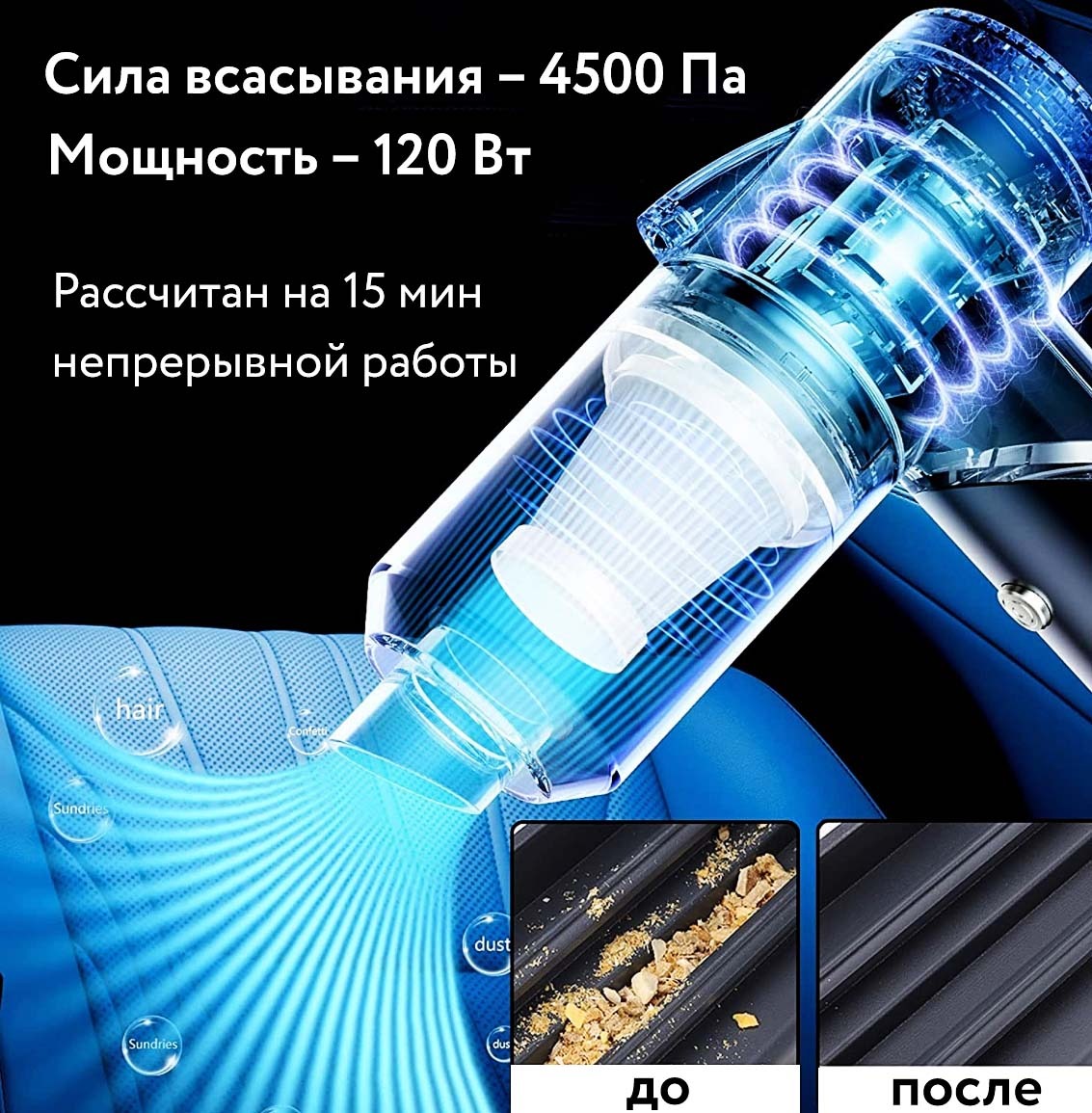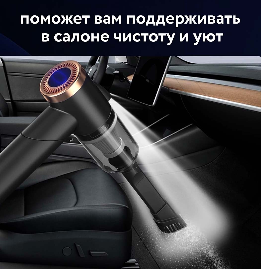 Аккумуляторный ручной автомобильный пылесос с насадками