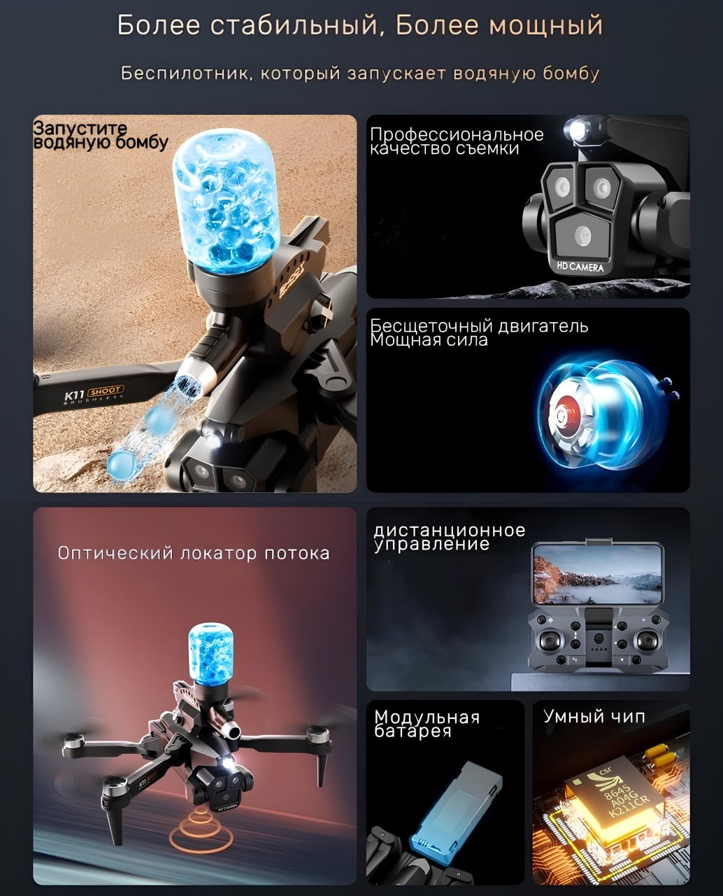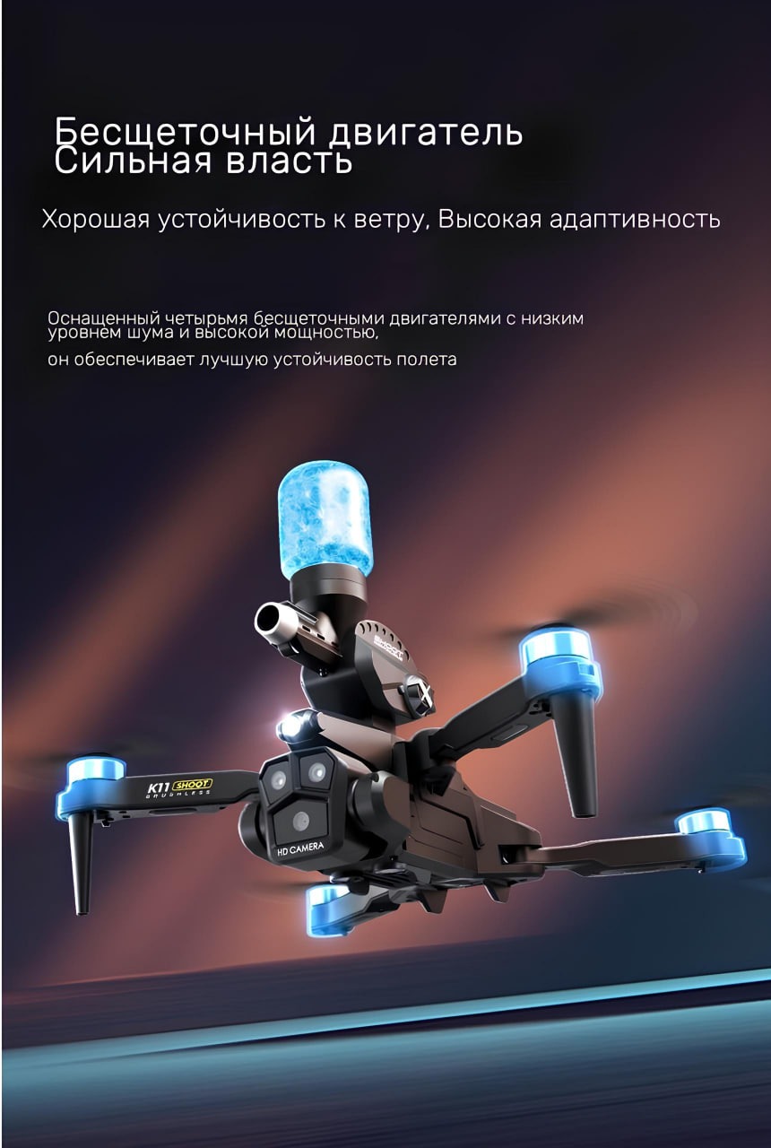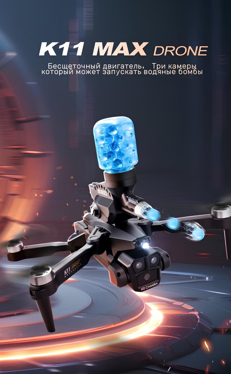Квадрокоптер с пульками K11 max Drone с тремя камерами 4K . Дрон для детей
