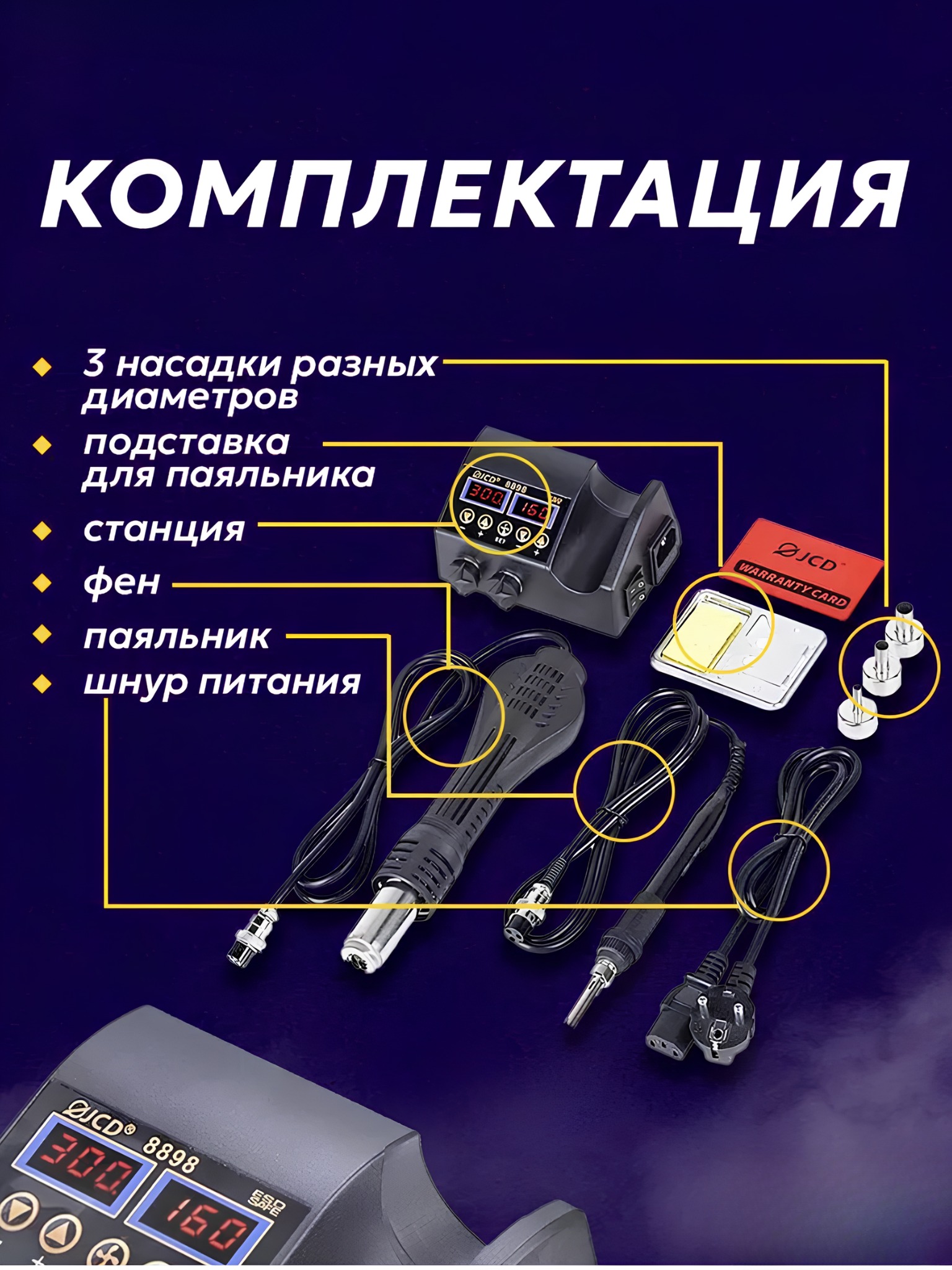 | Наименование товара | Паяльная станция 2-в-1 JCD 8898: надёжный инструмент для точных работ |