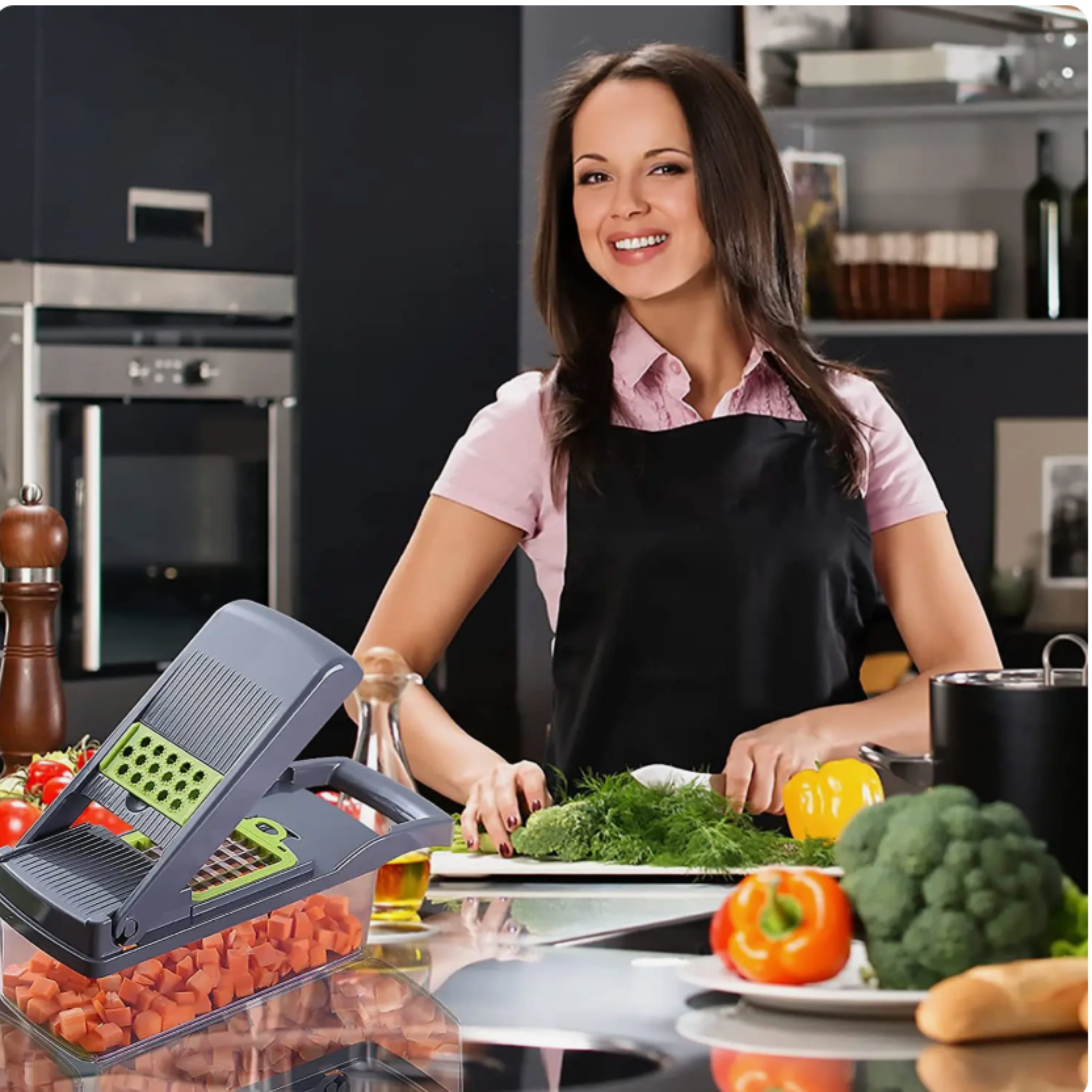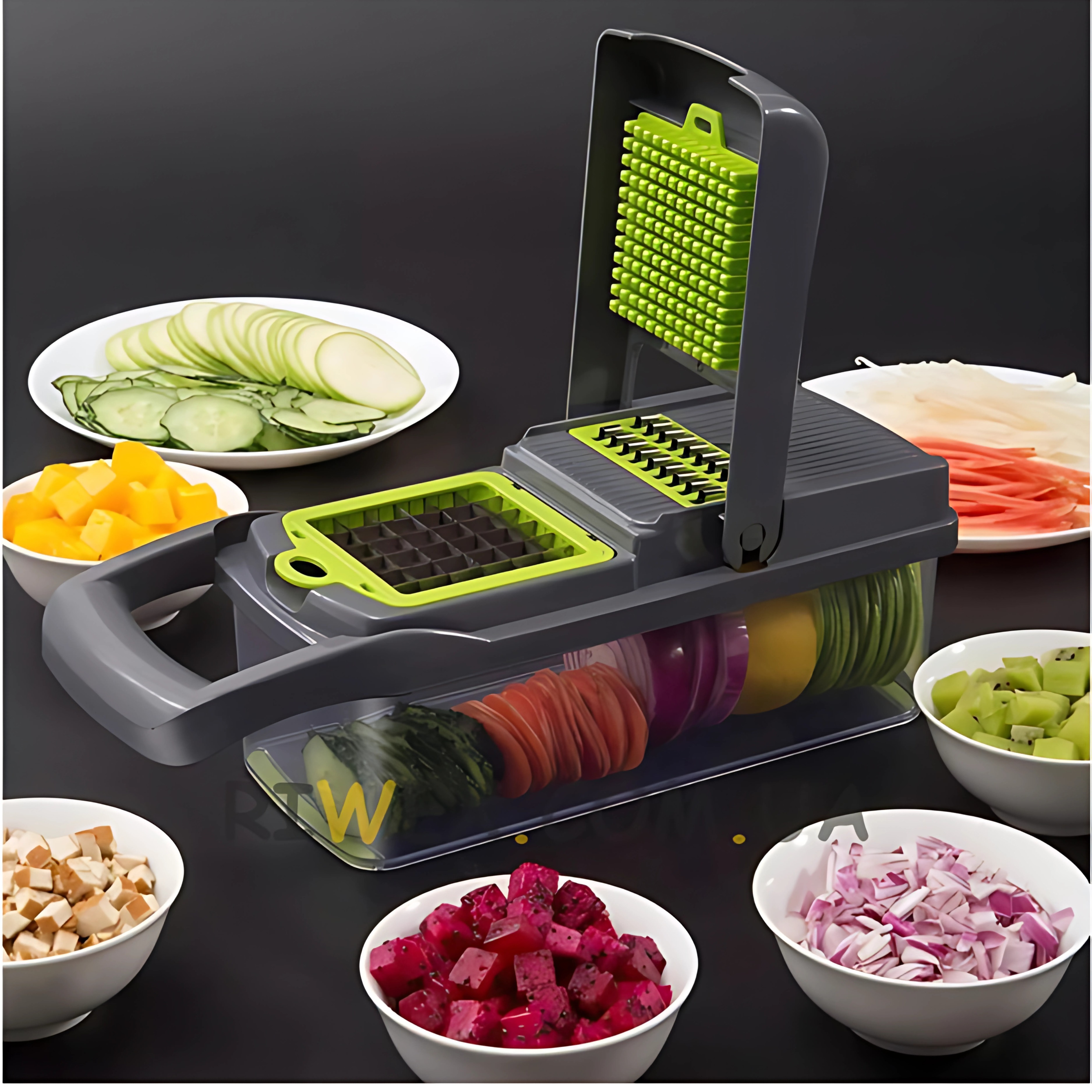 Эта универсальная овощерезка 14-в-1 станет незаменимым инструментом на вашей кухне. С её помощью вы легко и быстро нарежете овощи и фрукты разной формы и толщины. Отлично подойдёт для приготовления салатов, гарниров и других блюд. Прочная конструкция из нержавеющей стали и пластика обеспечивает долговечность и безопасность. Благодаря специальному контейнеру для сбора нарезки вы забудете о беспорядке на рабочей поверхности. Идеальный выбор для тех, кто ценит своё время и комфорт.