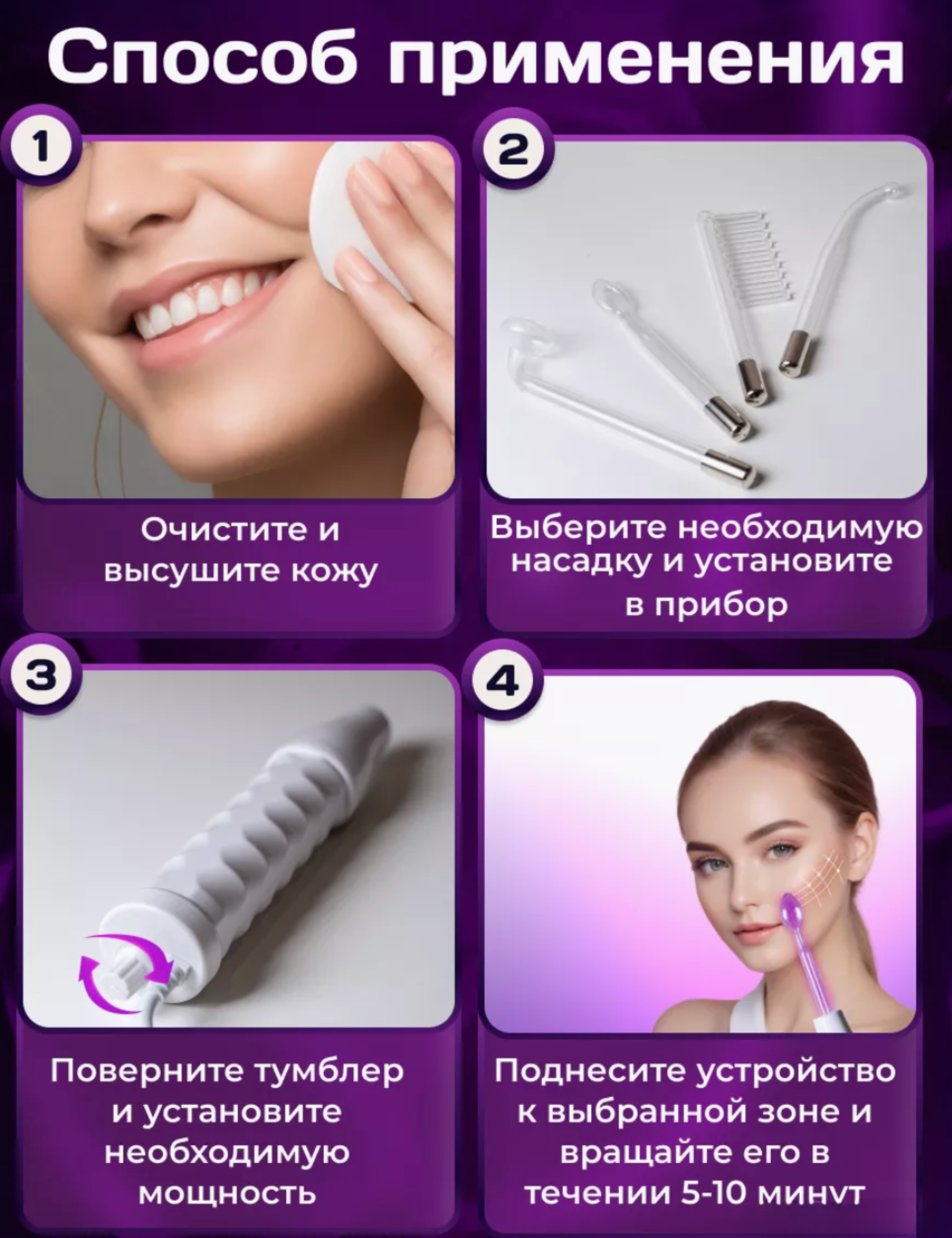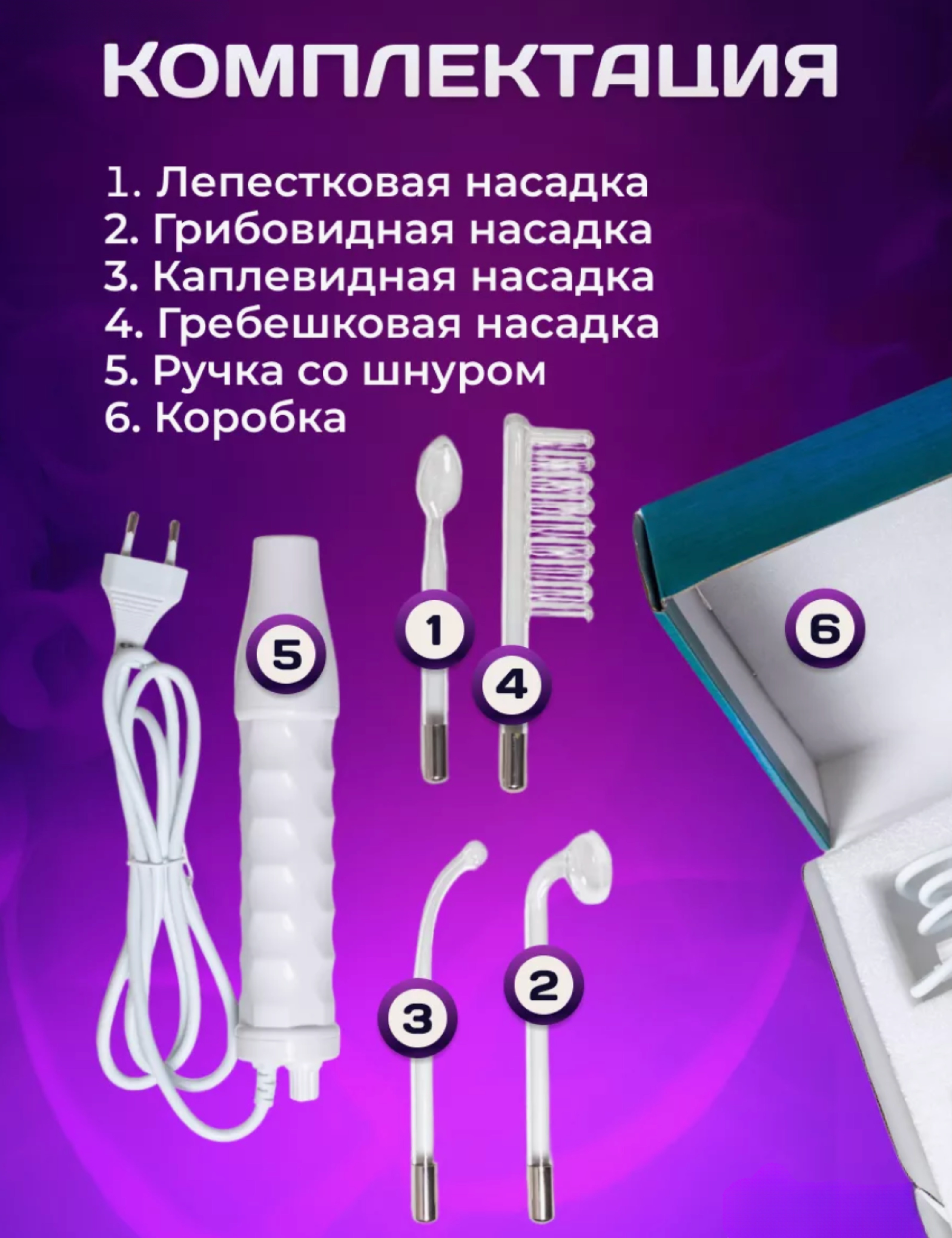 Дарсонваль прост и удобен в использовании: выберите нужную насадку, установите комфортный уровень интенсивности и наслаждайтесь процедурой прямо у себя дома.