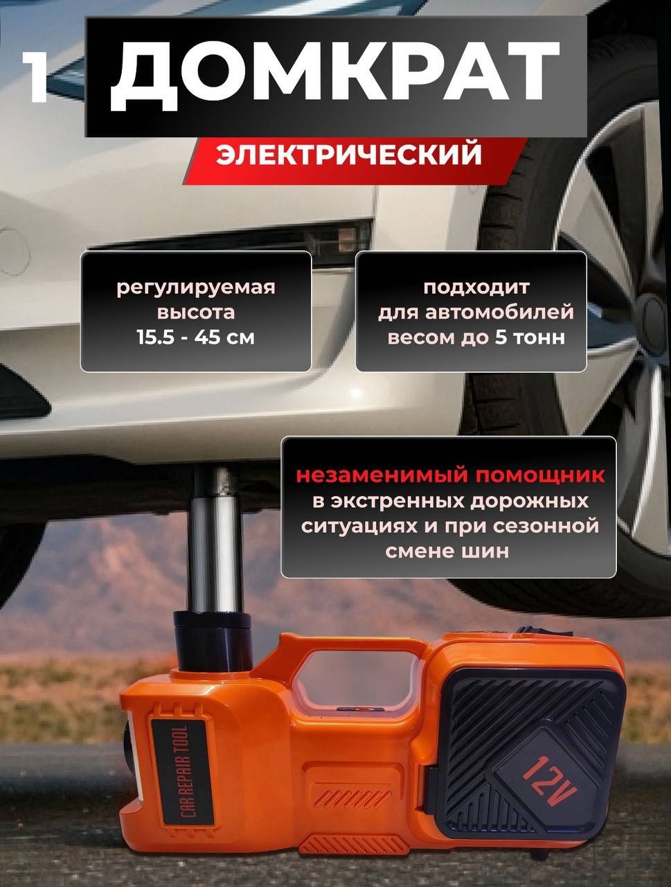 Электрический домкрат 3 в 1 (Домкрат, Компрессор, Фонарь) 12V, 5 т