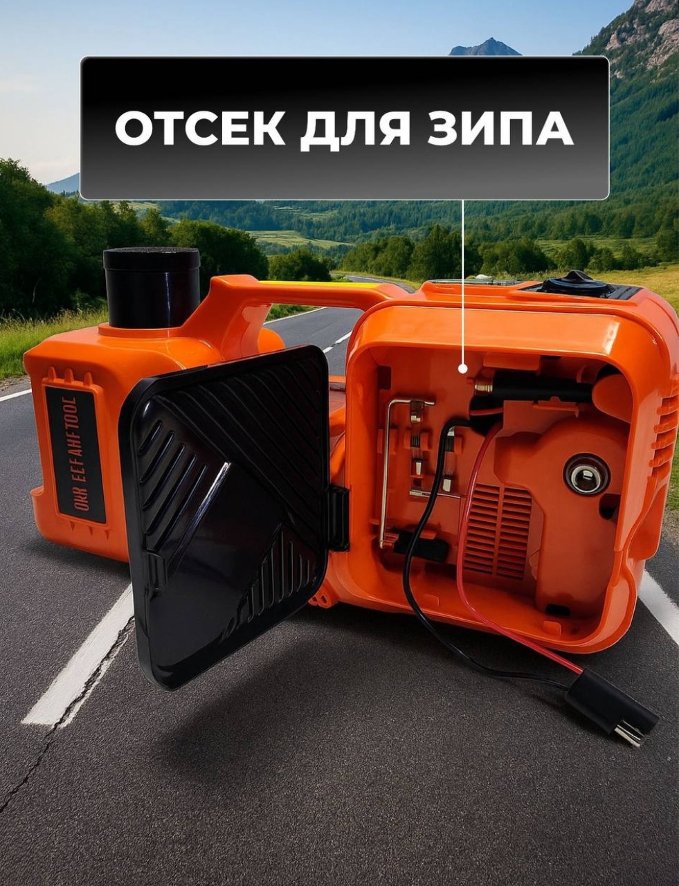 Электрический домкрат 12V 3в1 с компрессором и фонарем (5 тонн, 180W) встроенным насосом для подкачки шин