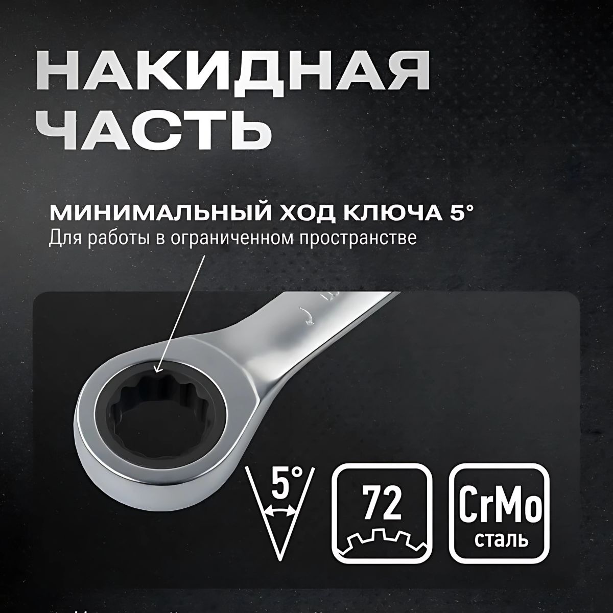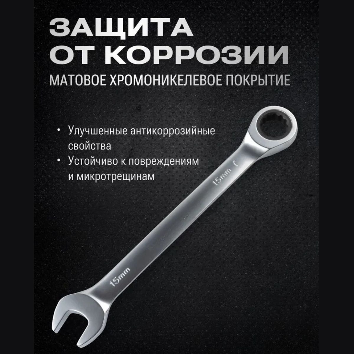 Ключи выполнены из прочной инструментальной стали, имеют хромированное покрытие, устойчивое к коррозии, и оснащены шарнирным механизмом, который обеспечивает удобство работы даже в труднодоступных местах.Трещоточный механизм позволяет работать быстро и эффективно, не снимая ключ с крепежа, что значительно экономит время. Универсальный набор подойдёт для автомастерских, строительных и ремонтных работ.