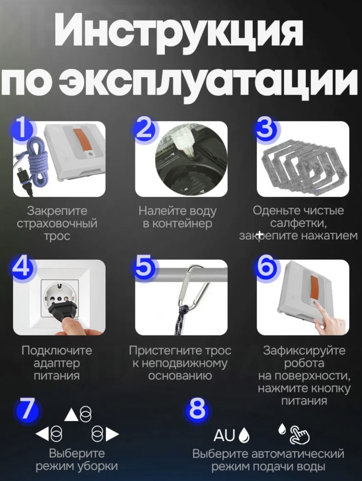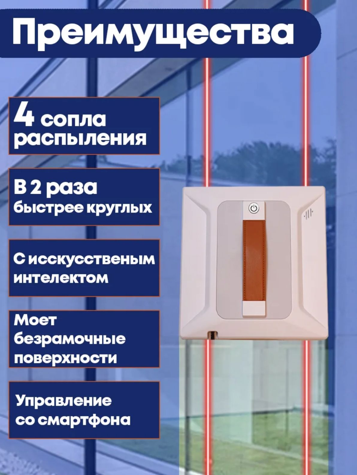 Робот-мойщик окон — это современное решение для ухода за стеклянными поверхностями. Устройство автоматически перемещается по стеклу, эффективно очищая его и экономя ваше время. Благодаря мощному всасыванию и продуманной системе распыления, мойка проходит без разводов и пятен.