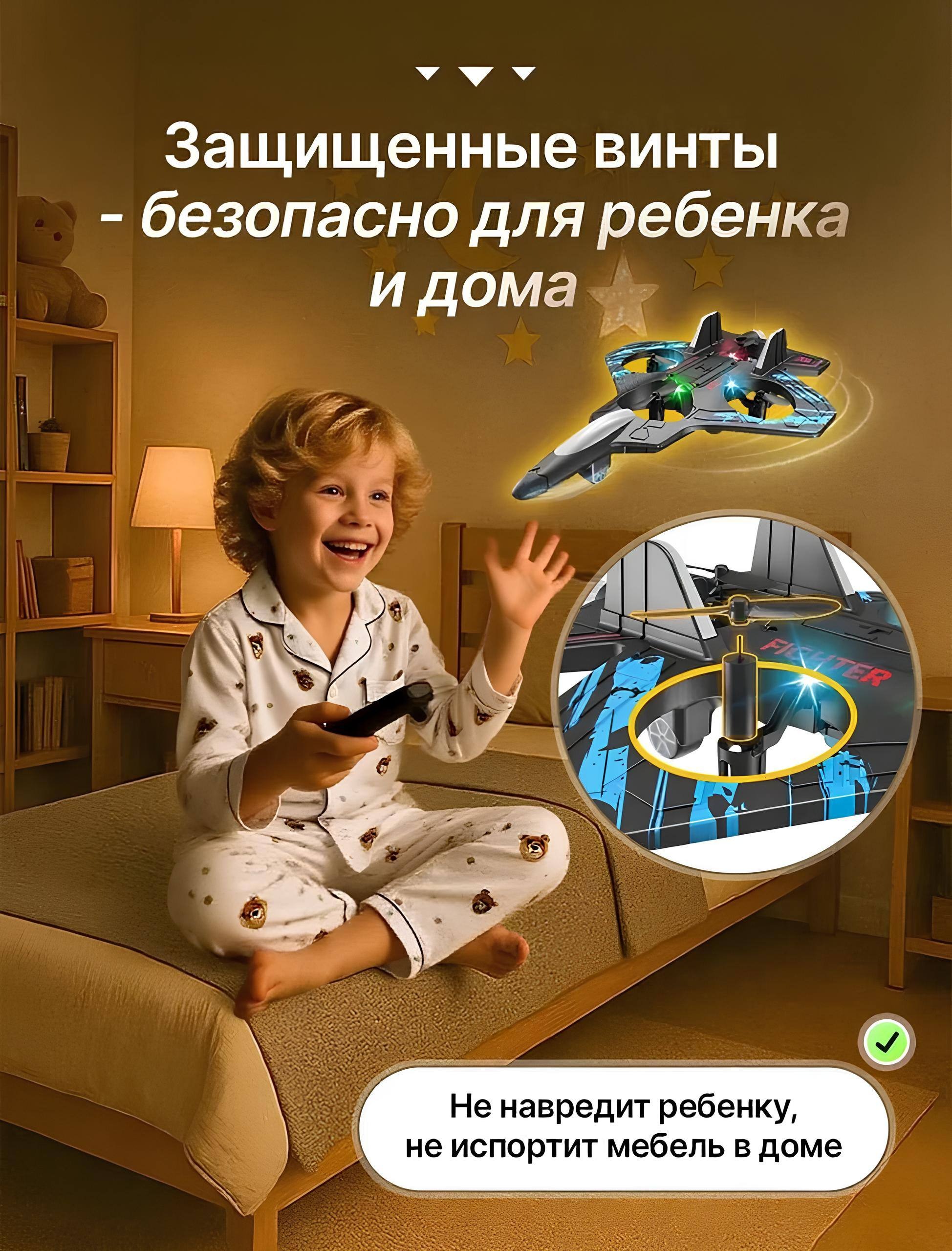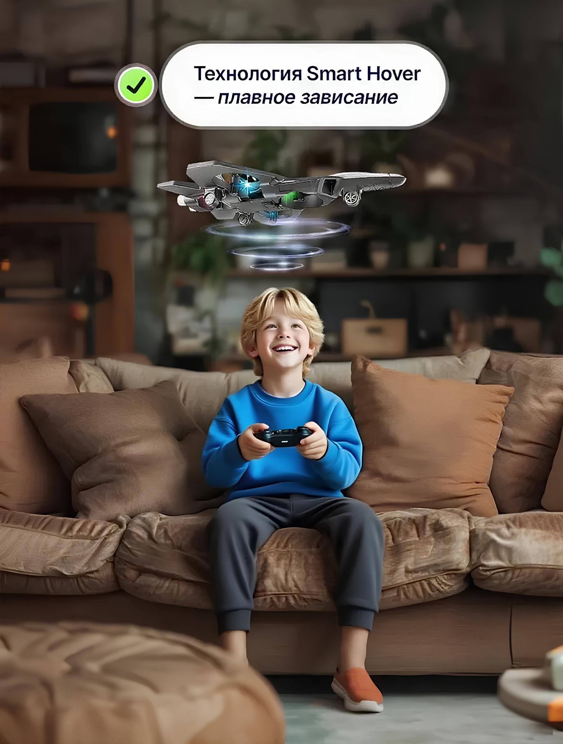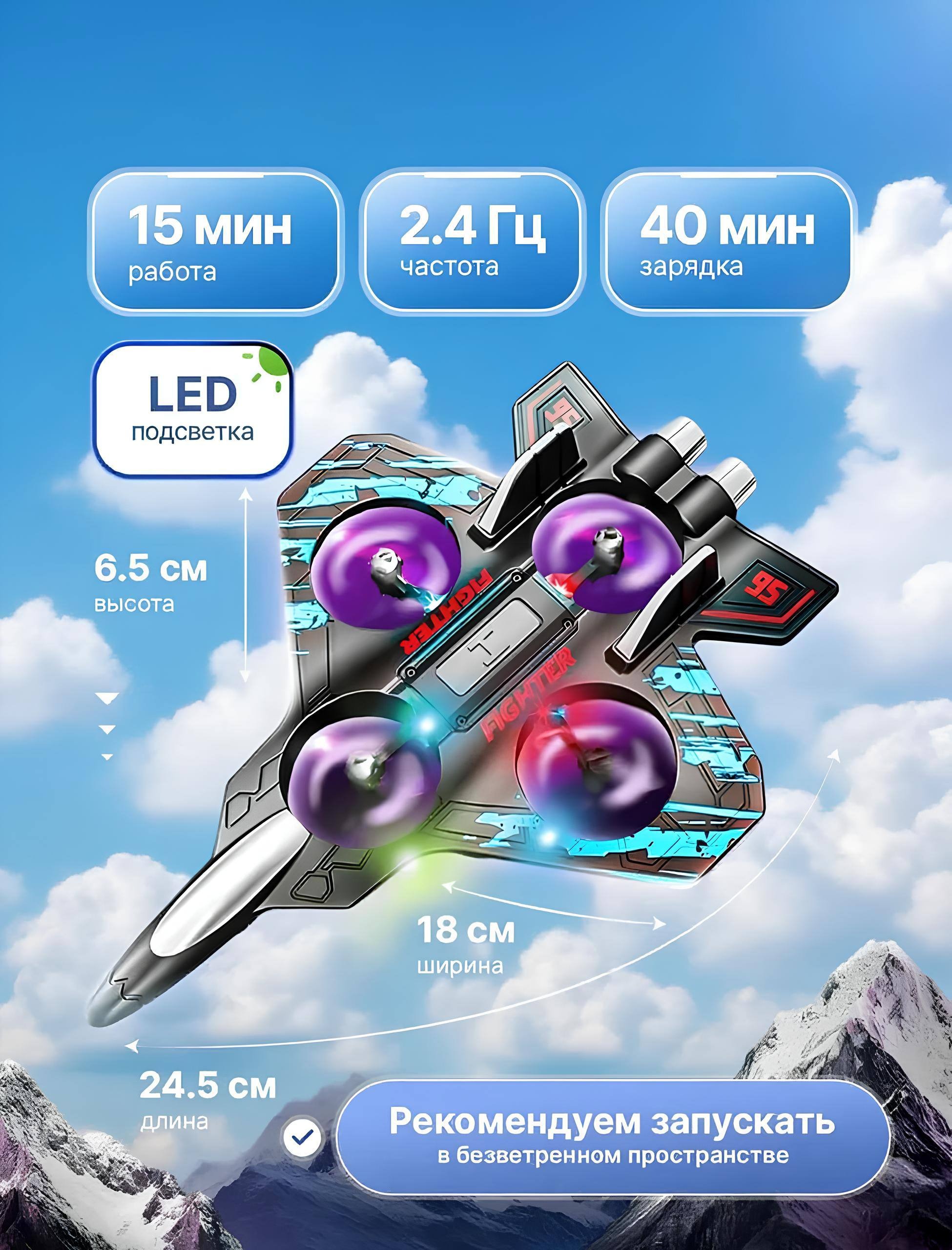 Сильный и устойчивый сигнал с радиусом действия до 70 метров, регулируемая скорость для новичков и продвинутых пользователей.Одно-клавишный взлет и посадка