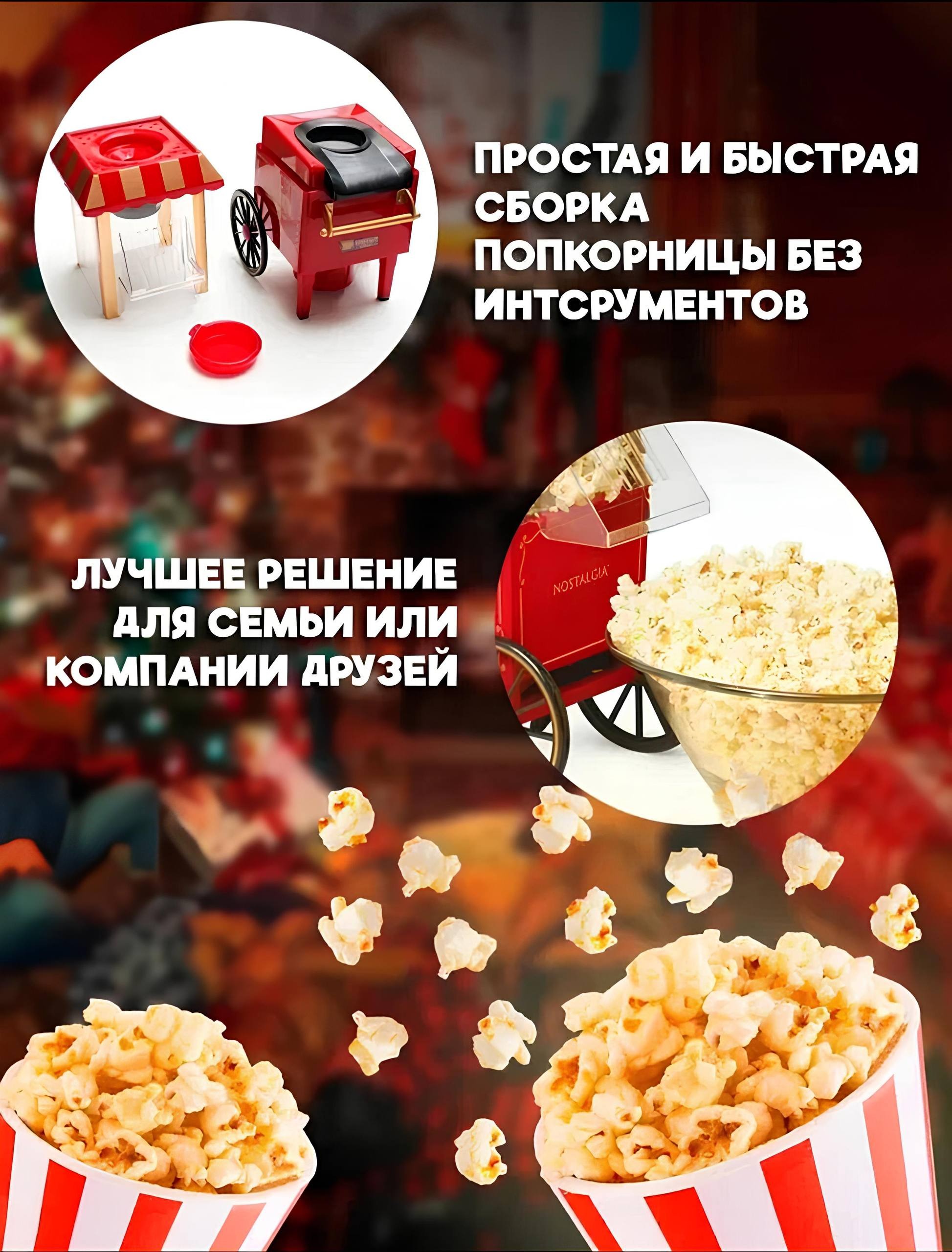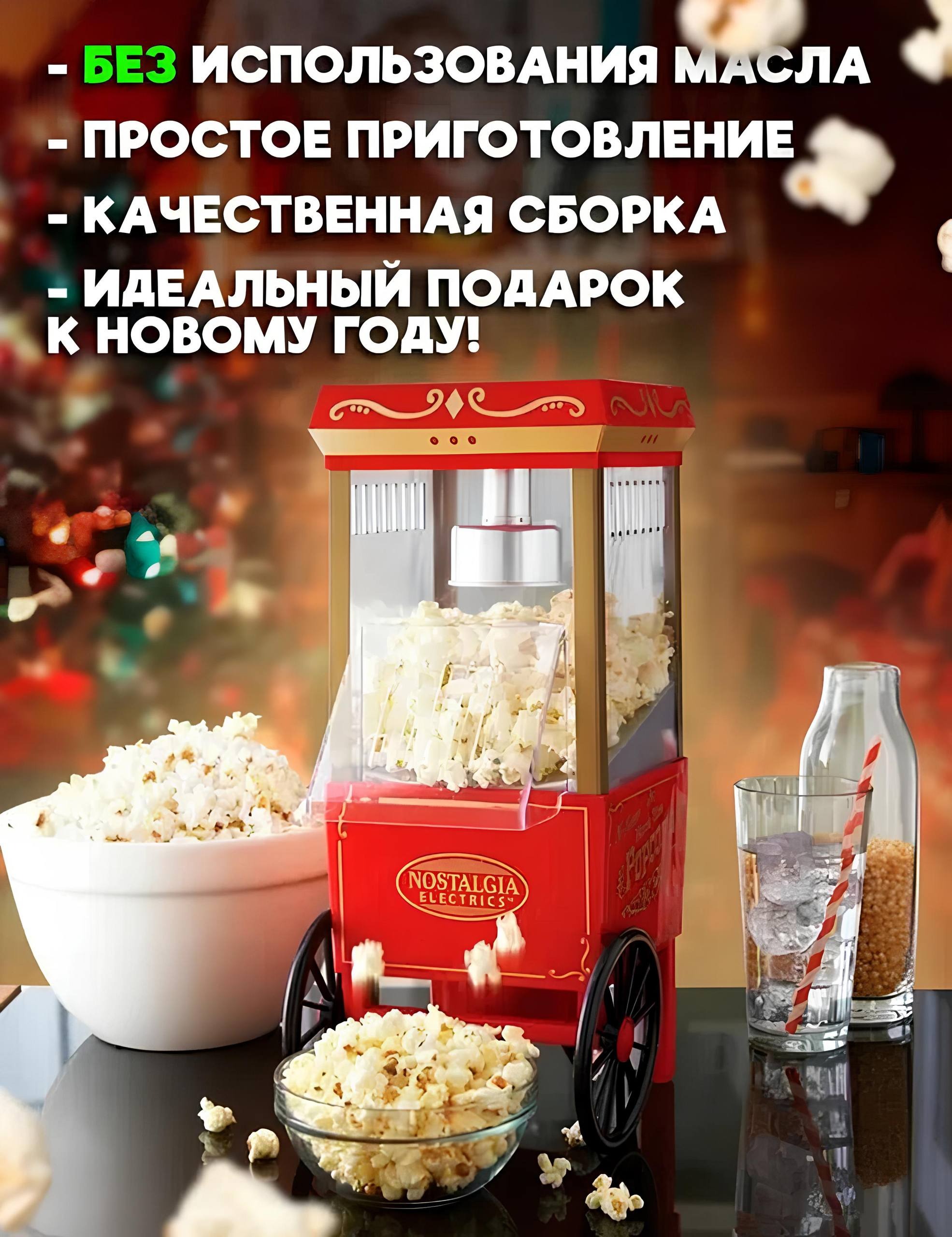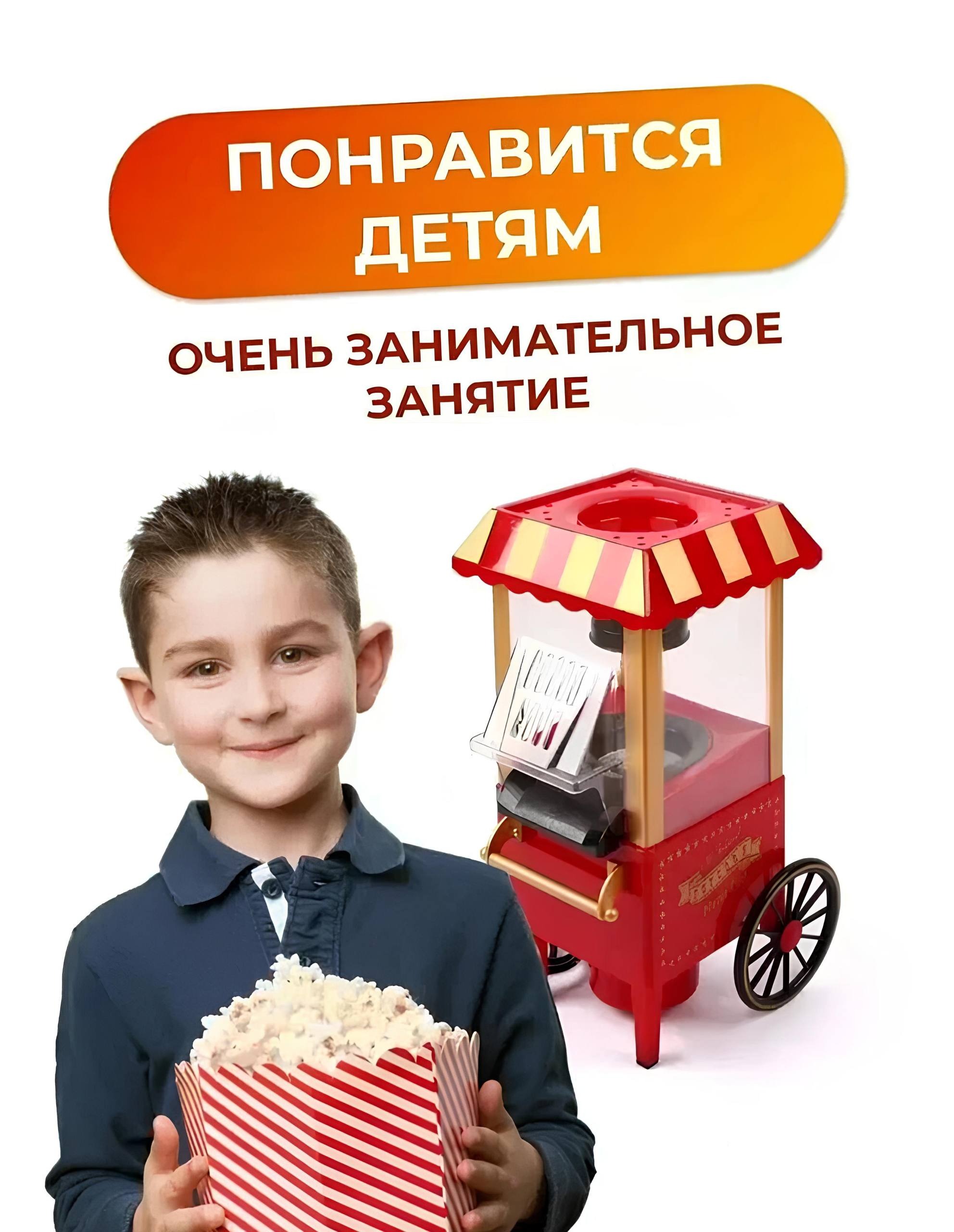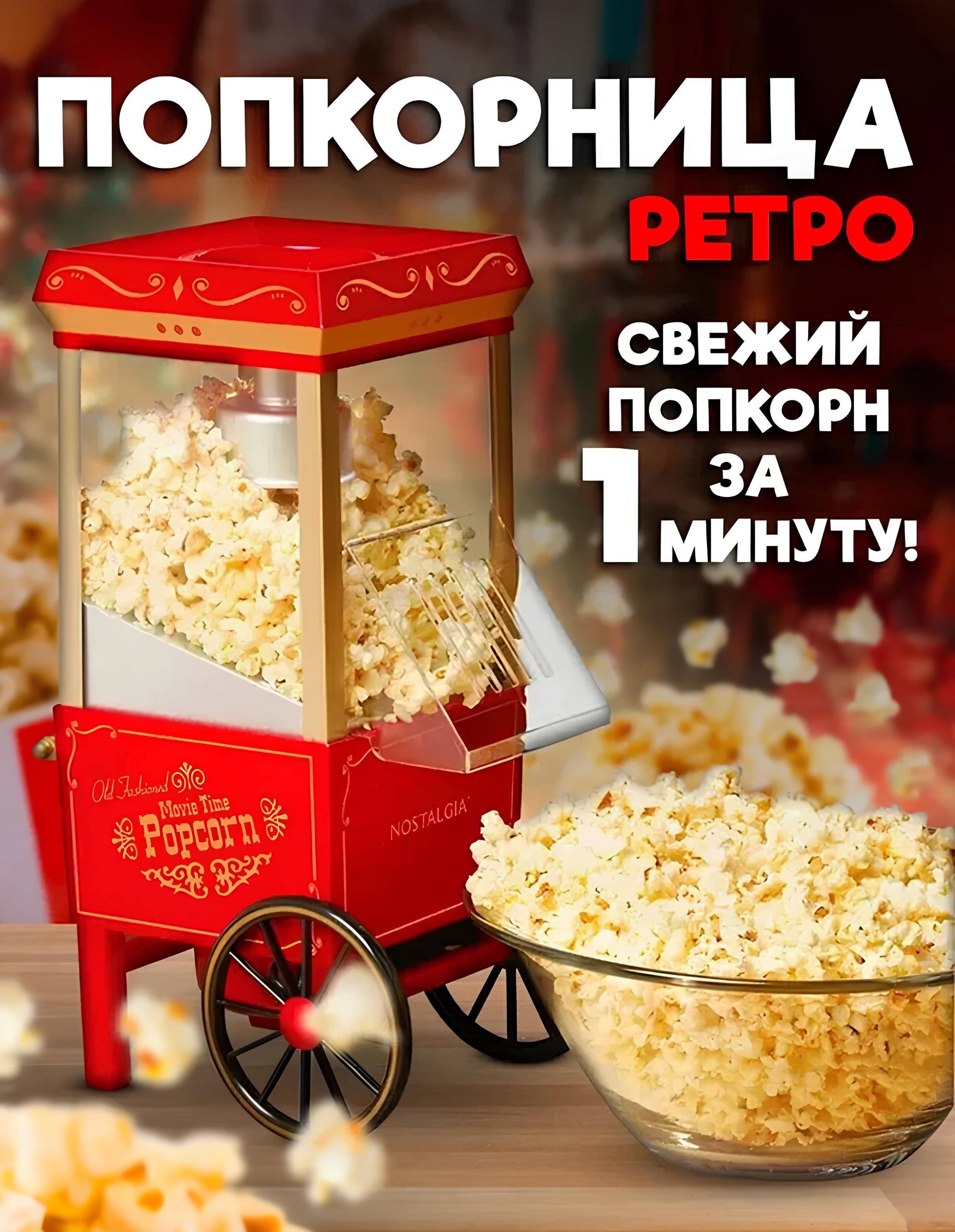 Прибор имеет стильный ретро-дизайн, поэтому он служит не только функциональной кухонной техникой, но и становится оригинальным элементом интерьера. Вы можете экспериментировать со вкусами: готовить солёный или сладкий попкорн, добавлять ваниль, специи или любимые сиропы — всё зависит от вашей фантазии.
