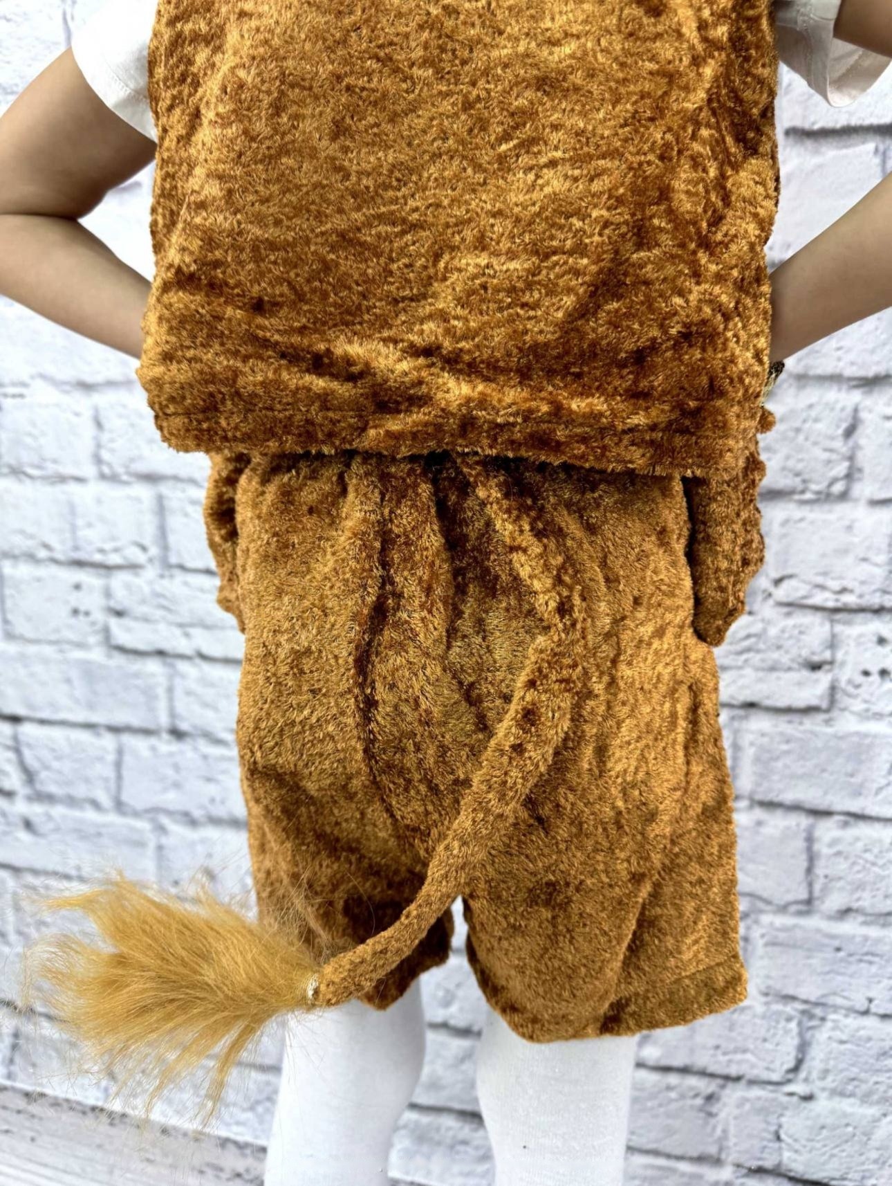 В комплект входит жилет, шорты, перчатки-лапки и головной убор с гривой, что создаёт полноценный образ без необходимости в дополнительных аксессуарах. Удобный крой не сковывает движений, благодаря чему ребёнку комфортно бегать, танцевать и участвовать в активных играх.