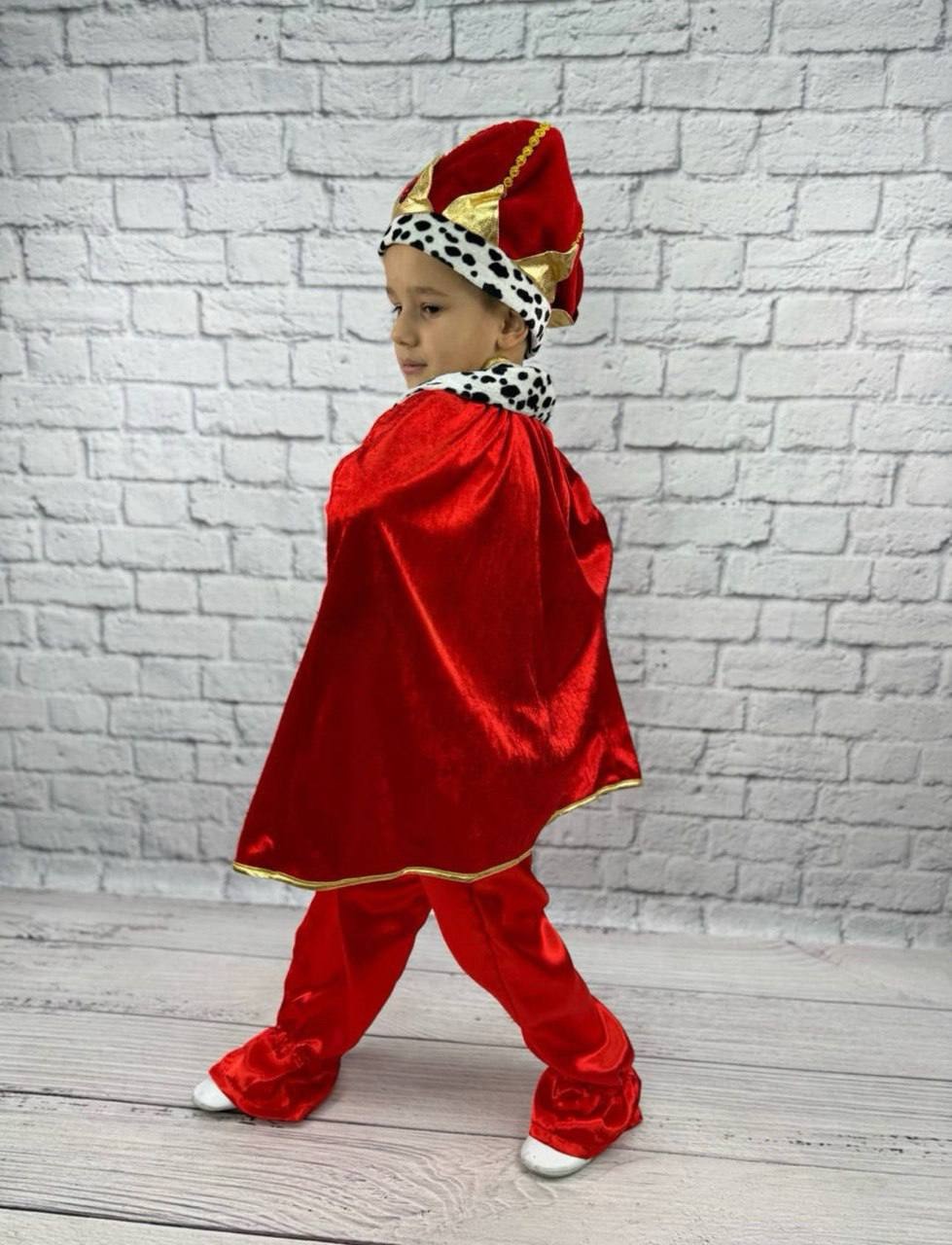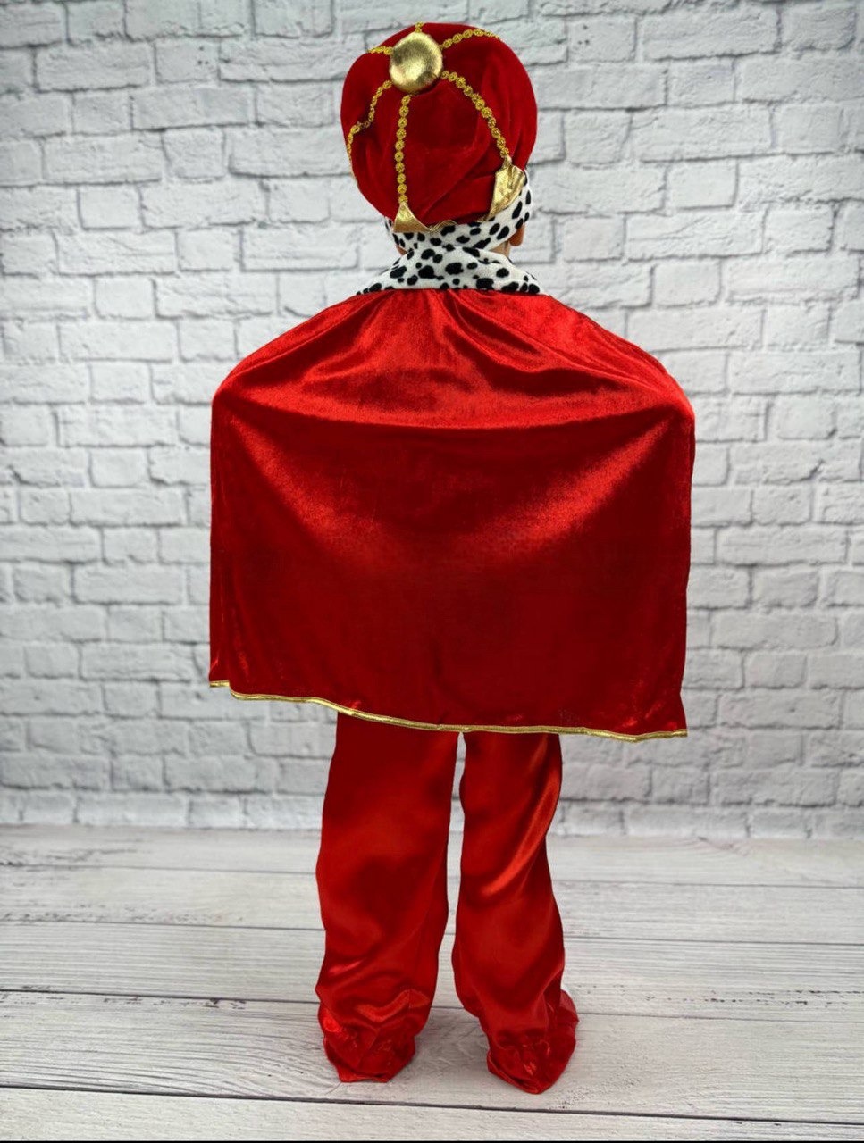 Роскошный костюм Короля в средневековом стиле создан специально для мальчиков, которые любят быть в центре внимания. Яркий красный цвет, накидка с королевской отделкой и праздничный головной убор помогают ребенку почувствовать себя настоящим правителем сказочного королевства.