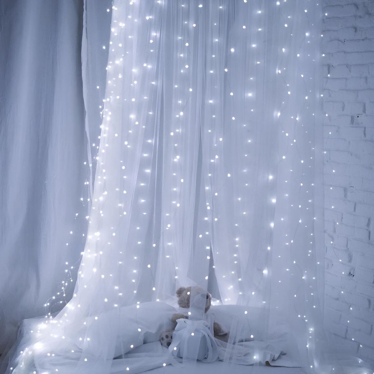 Светодиодная завеса имеет 8 режимов свечения — от мягкого мерцания до интенсивного сияния, которые легко переключаются с помощью пульта дистанционного управления.