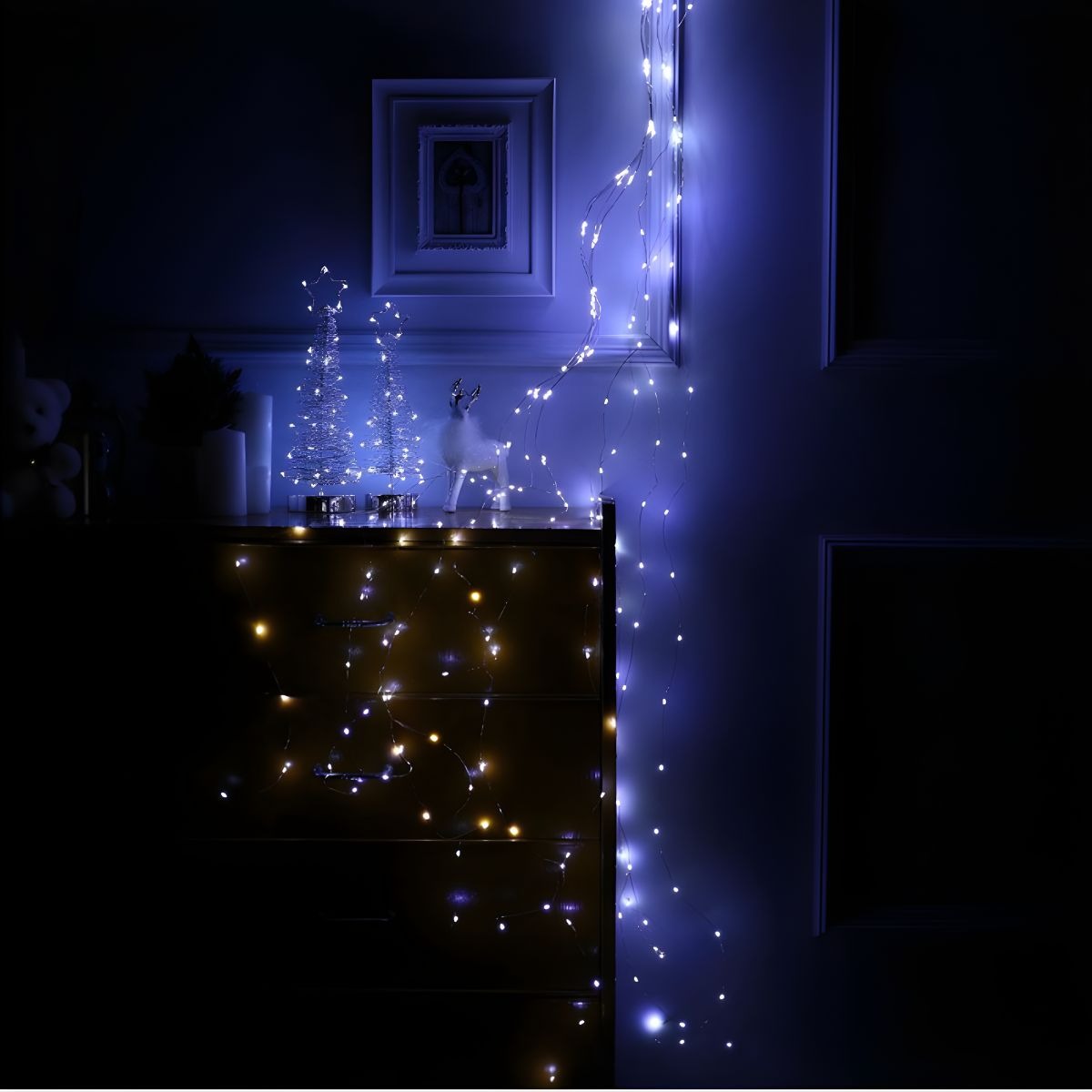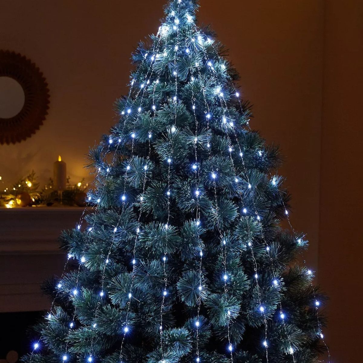 Она состоит из 30 нитей общей длиной 2 метра и 400 светодиодов холодного белого свечения, создающих эффект «ледяного сияния».