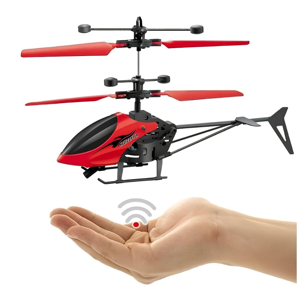 Набор: Летающий вертолет с сенсорным управлением + Детские часы-машинка на радиоуправлении (красный)