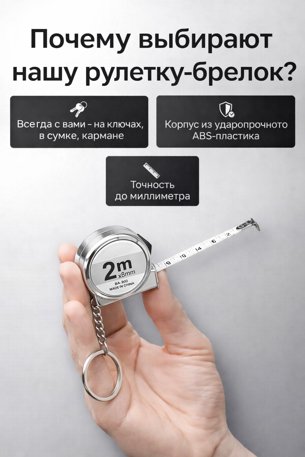 Компактная рулетка-брелок — это удобный и практичный аксессуар для ежедневного использования. Мини-рулетка легко крепится к ключам, рюкзаку или сумке, всегда под рукой, когда нужно быстро что-то измерить.