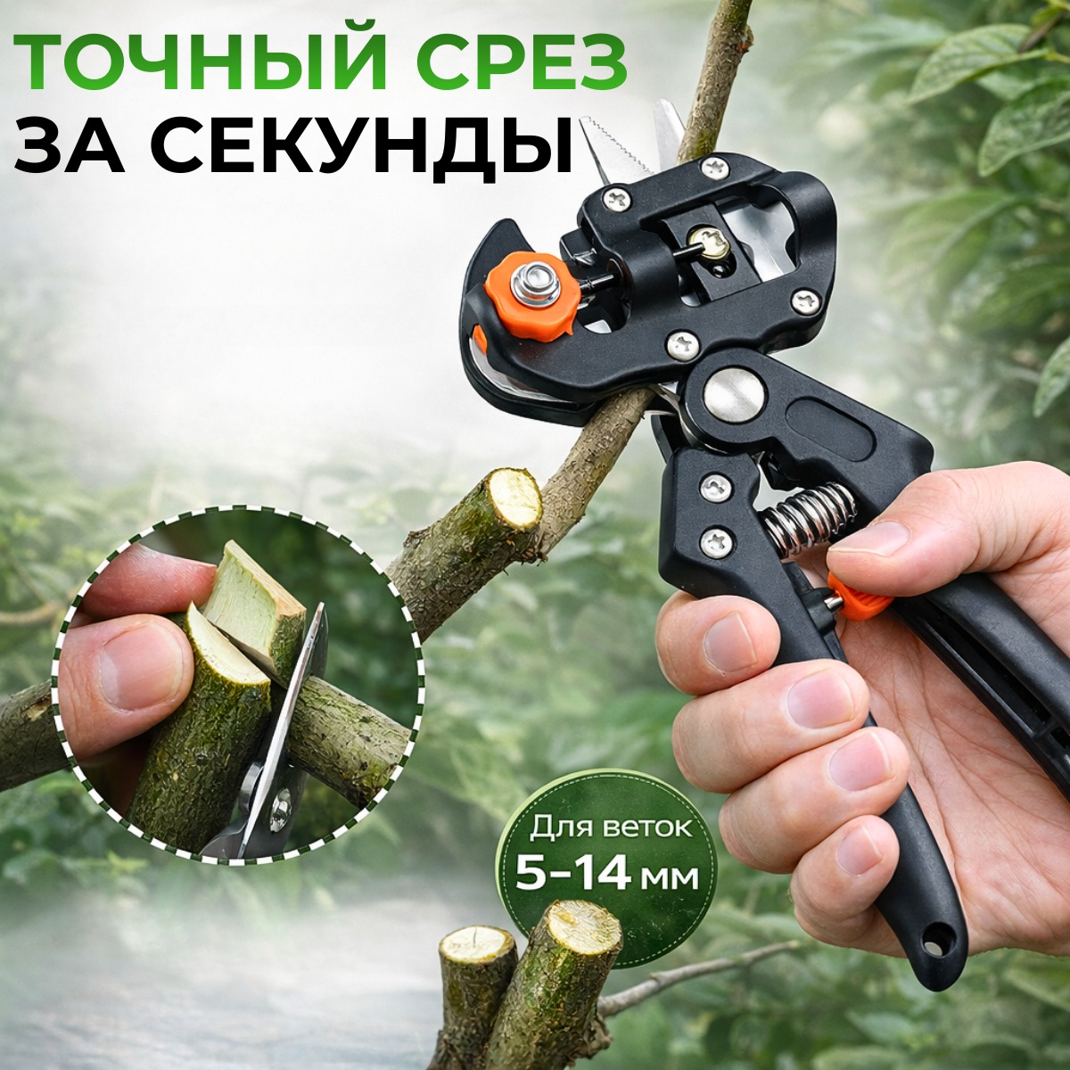 Тип: секатор и прививочный инструмент 2 в 1