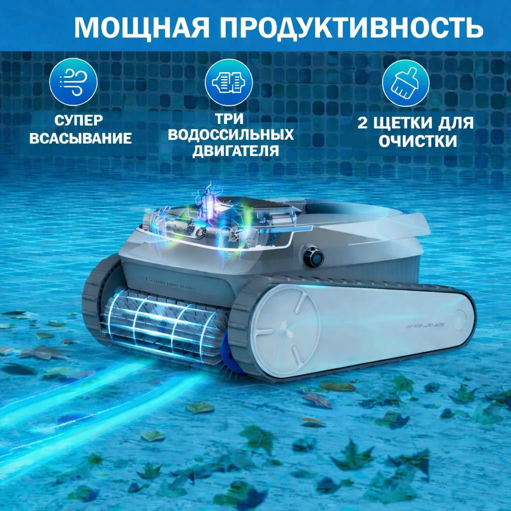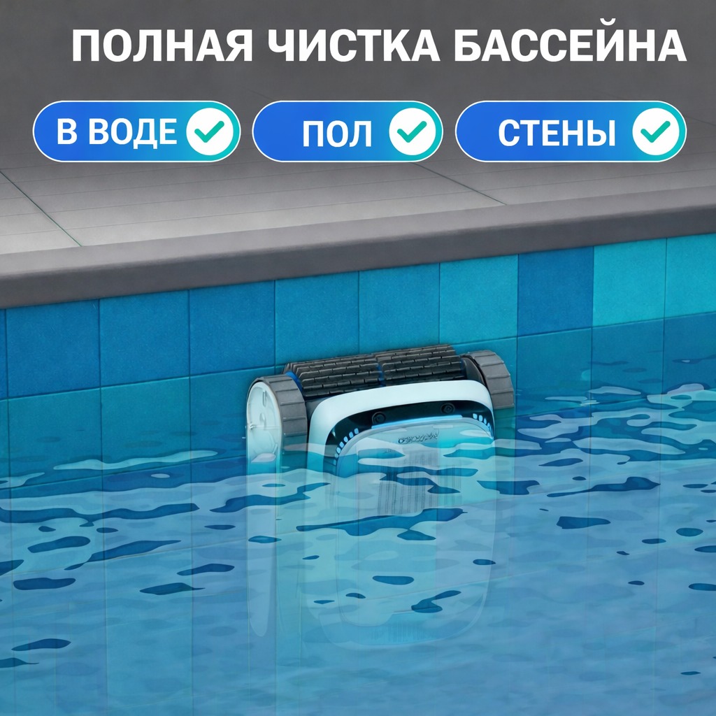 Просто опустите робот в воду, выберите режим — и наслаждайтесь кристально чистым бассейном.