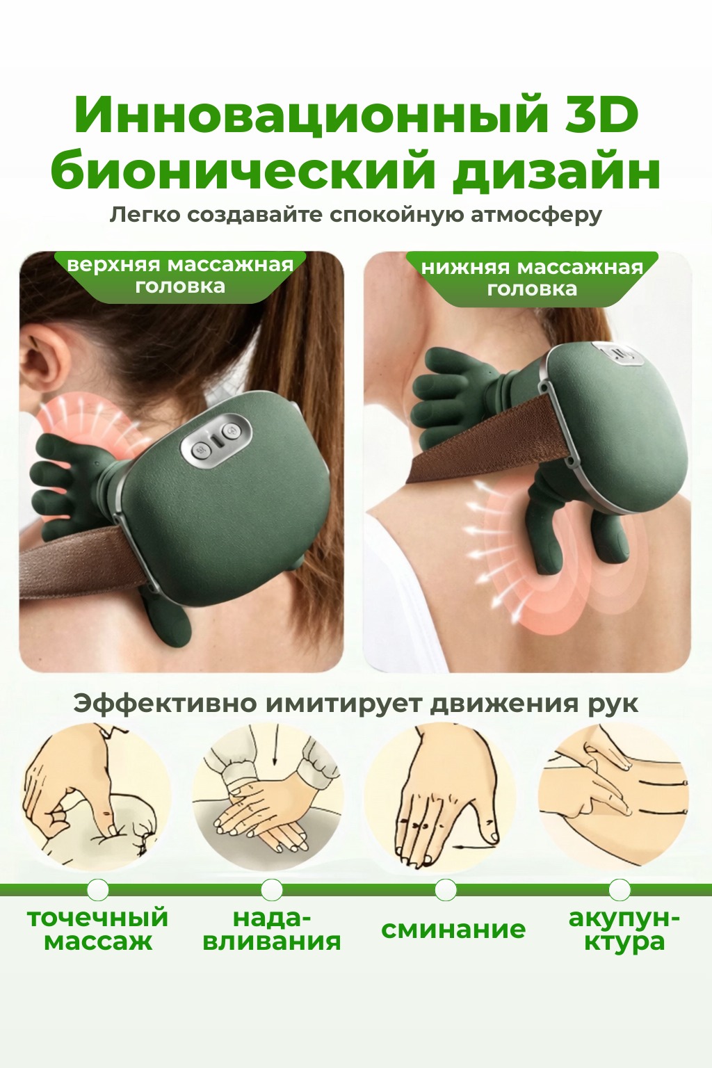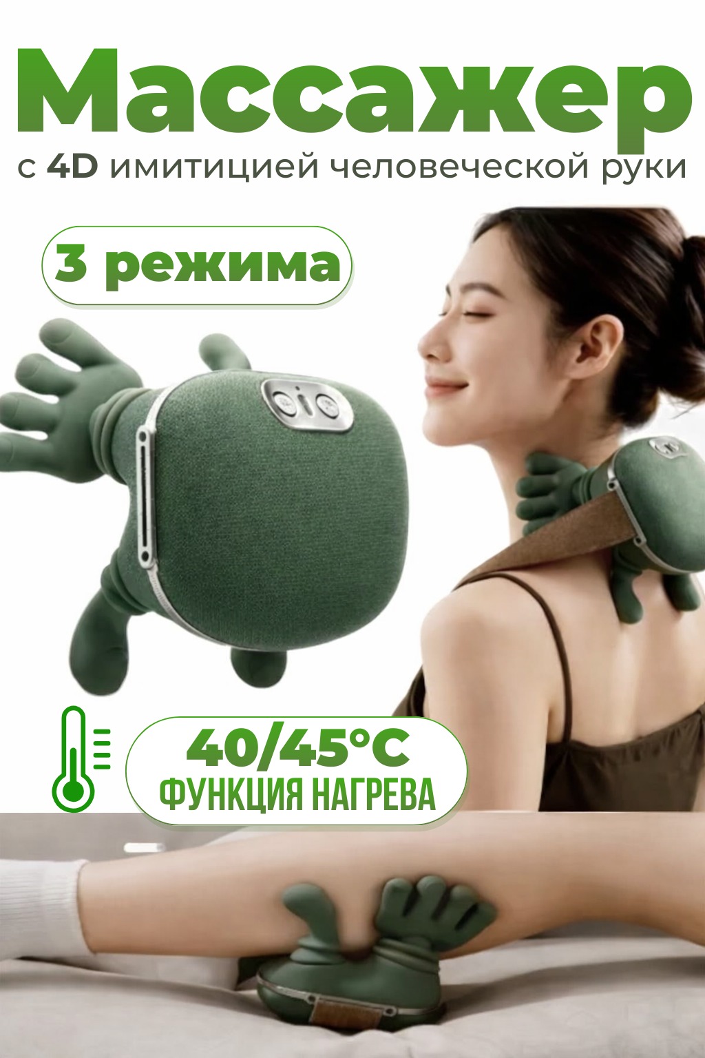 - Тип массажа: роликовый, разминающий (имитация ручного массажа)
