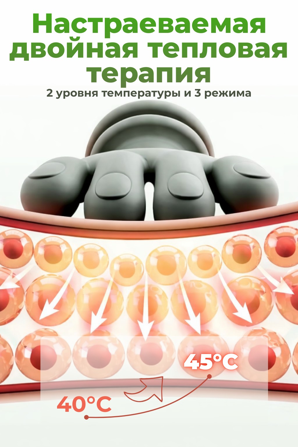 Функция инфракрасного подогрева усиливает расслабляющий эффект, мягко прогревает мышцы и помогает быстрее избавиться от дискомфорта после рабочего дня, тренировок или длительного сидения за компьютером. Несколько режимов интенсивности позволяют подобрать оптимальную силу воздействия - от лёгкого расслабляющего массажа до более глубокого и интенсивного.