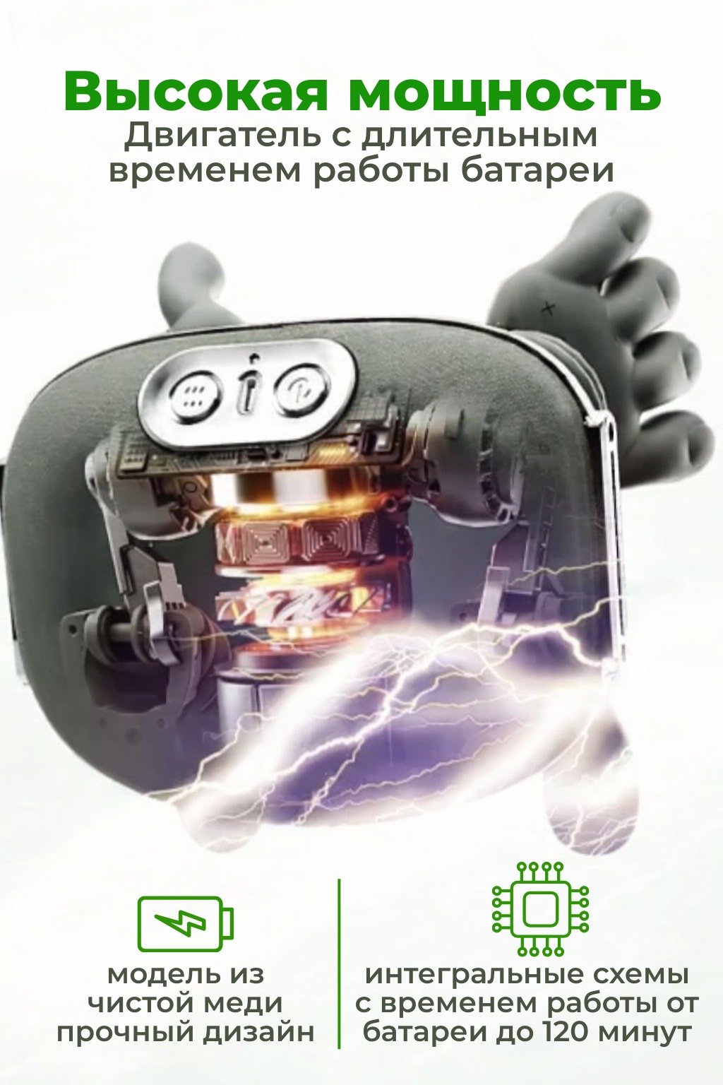 - Питание: встроенный аккумулятор