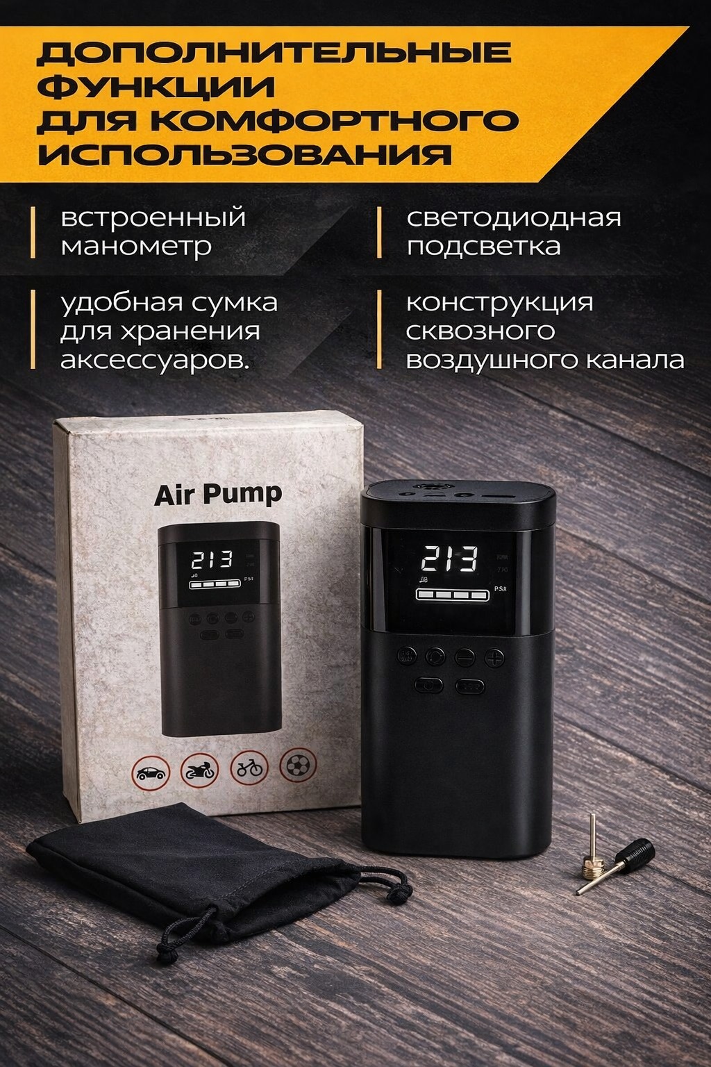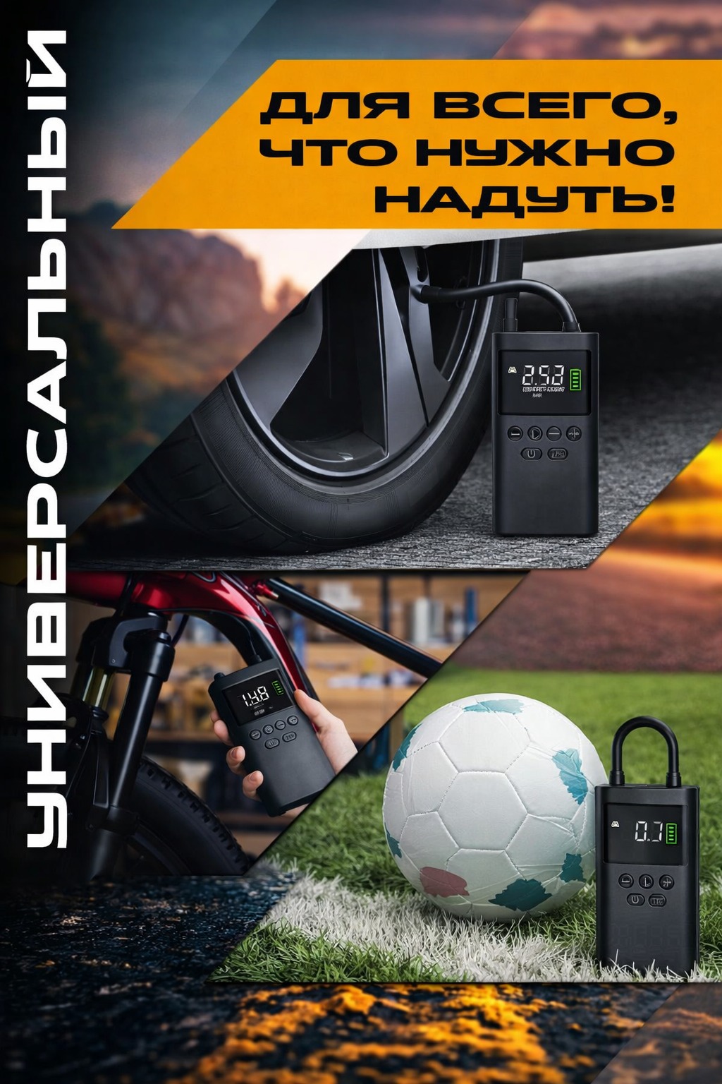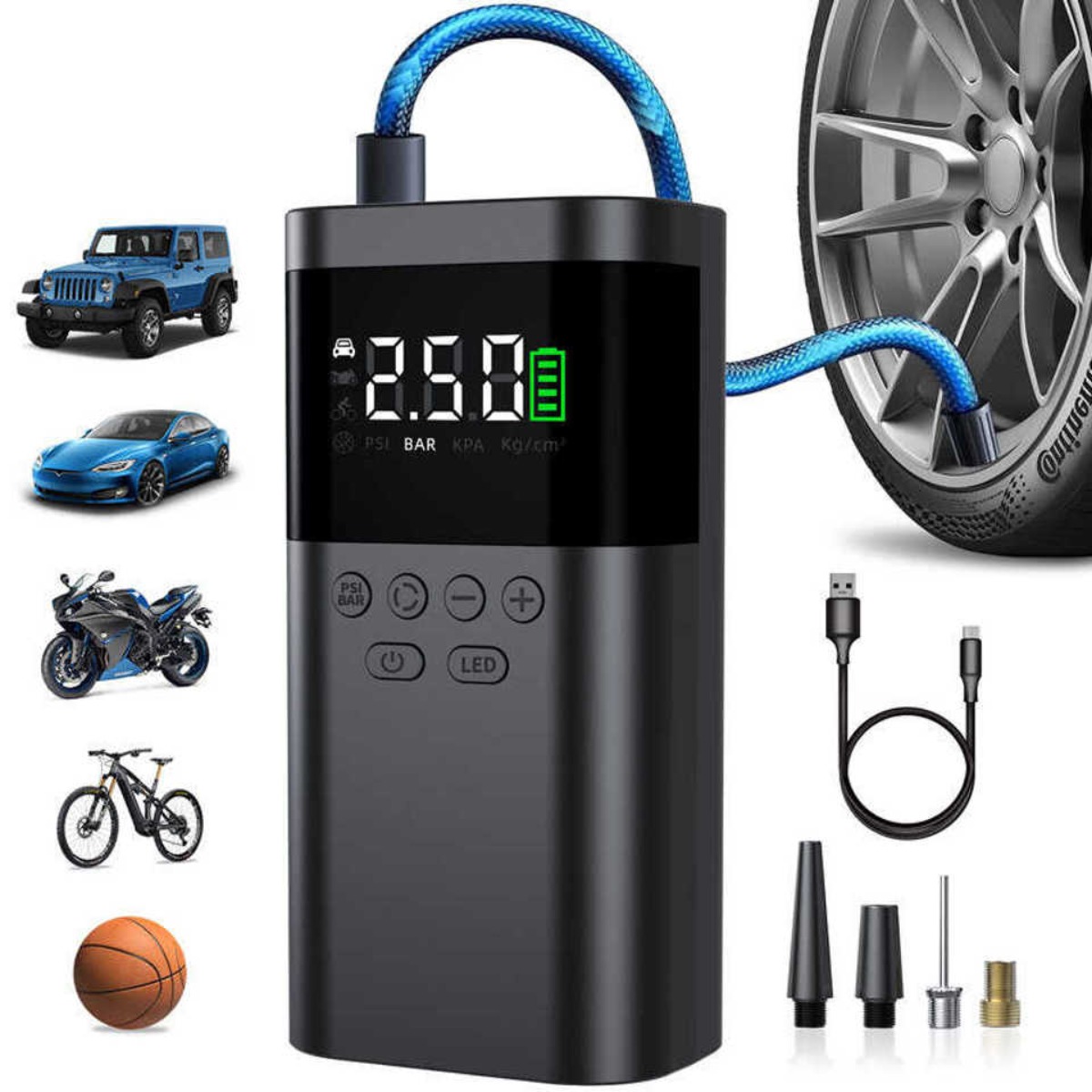 Аккумуляторный автомобильный электрический насос для шин - беспроводной компрессор с ручной зарядкой USB
