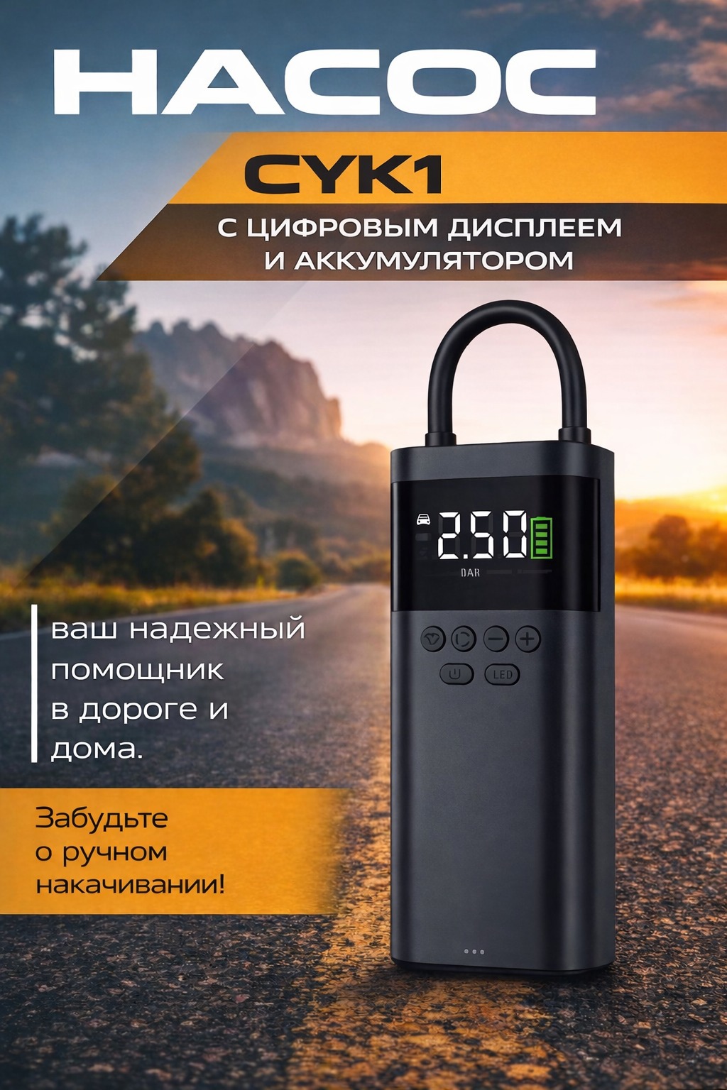 Портативный автомобильный компрессор CYK1 с цифровым дисплеем и аккумулятором