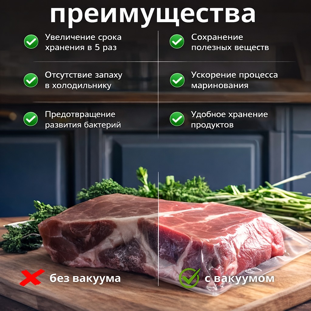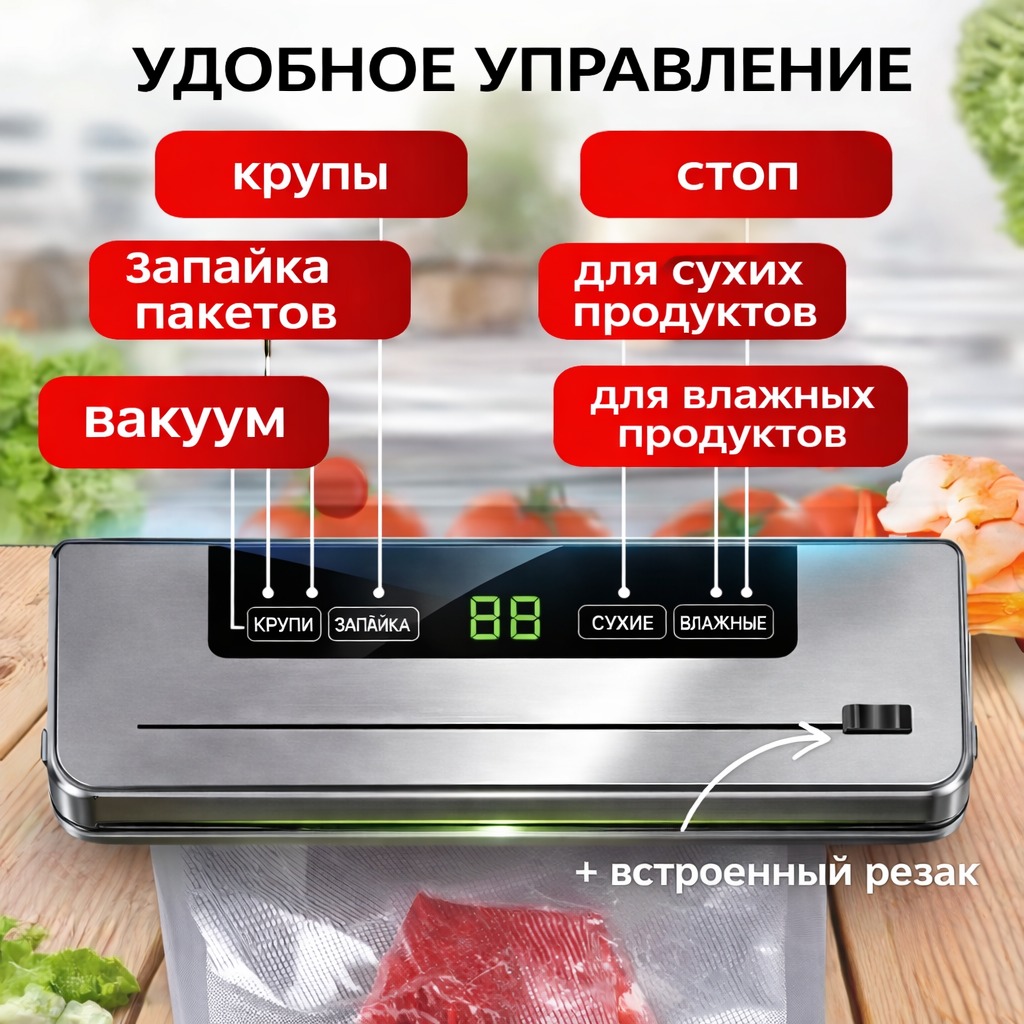 Современный вакуумный упаковщик — это незаменимый помощник на кухне для хранения, маринования и подготовки продуктов к приготовлению. Благодаря мощному вакууму и встроенной системе ультрафиолетовой стерилизации он не только удаляет воздух из пакета, но и дополнительно заботится о безопасности пищи, продлевая срок её хранения в несколько раз.