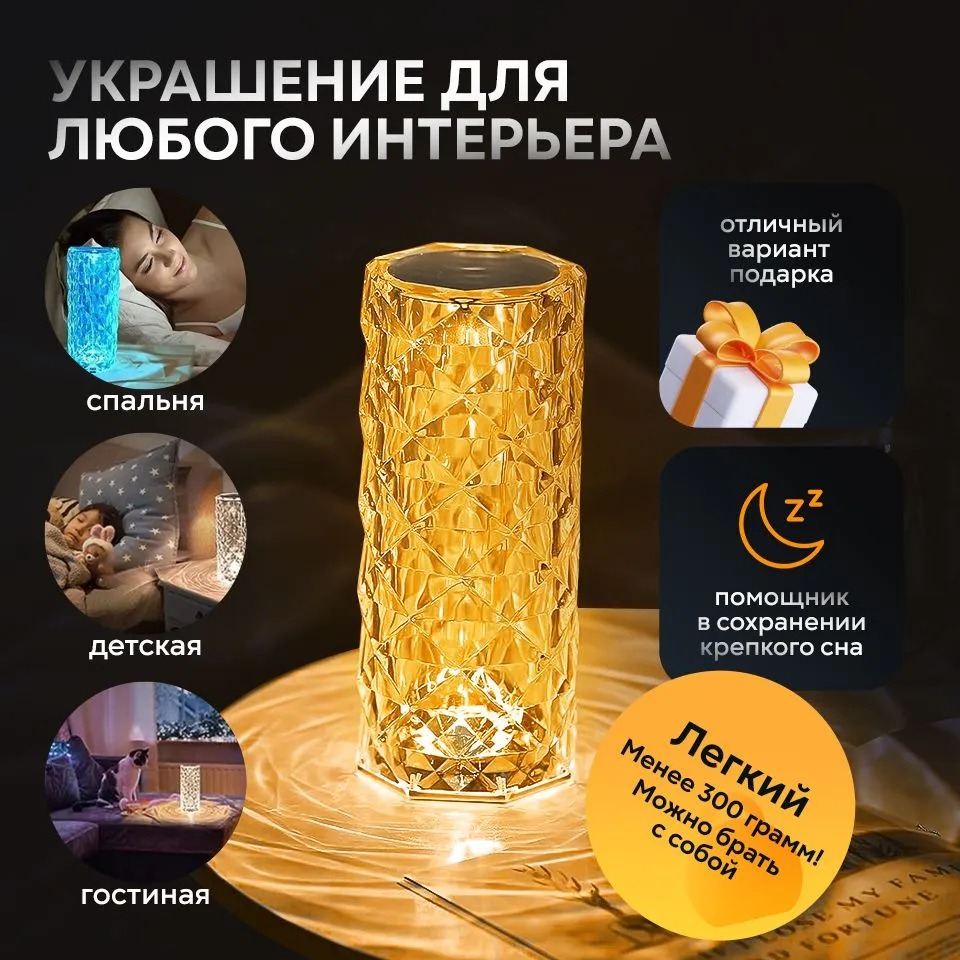 Crystal Rose Ambience превращает обычное освещение в атмосферный световой акцент, который делает интерьер более тёплым, стильным и живым.