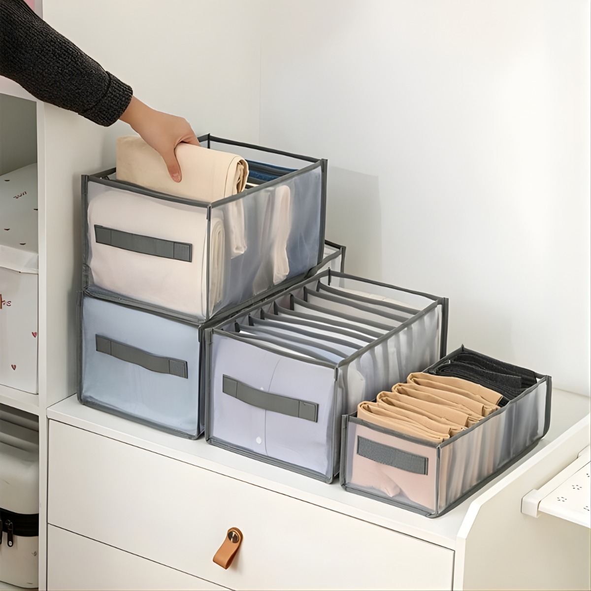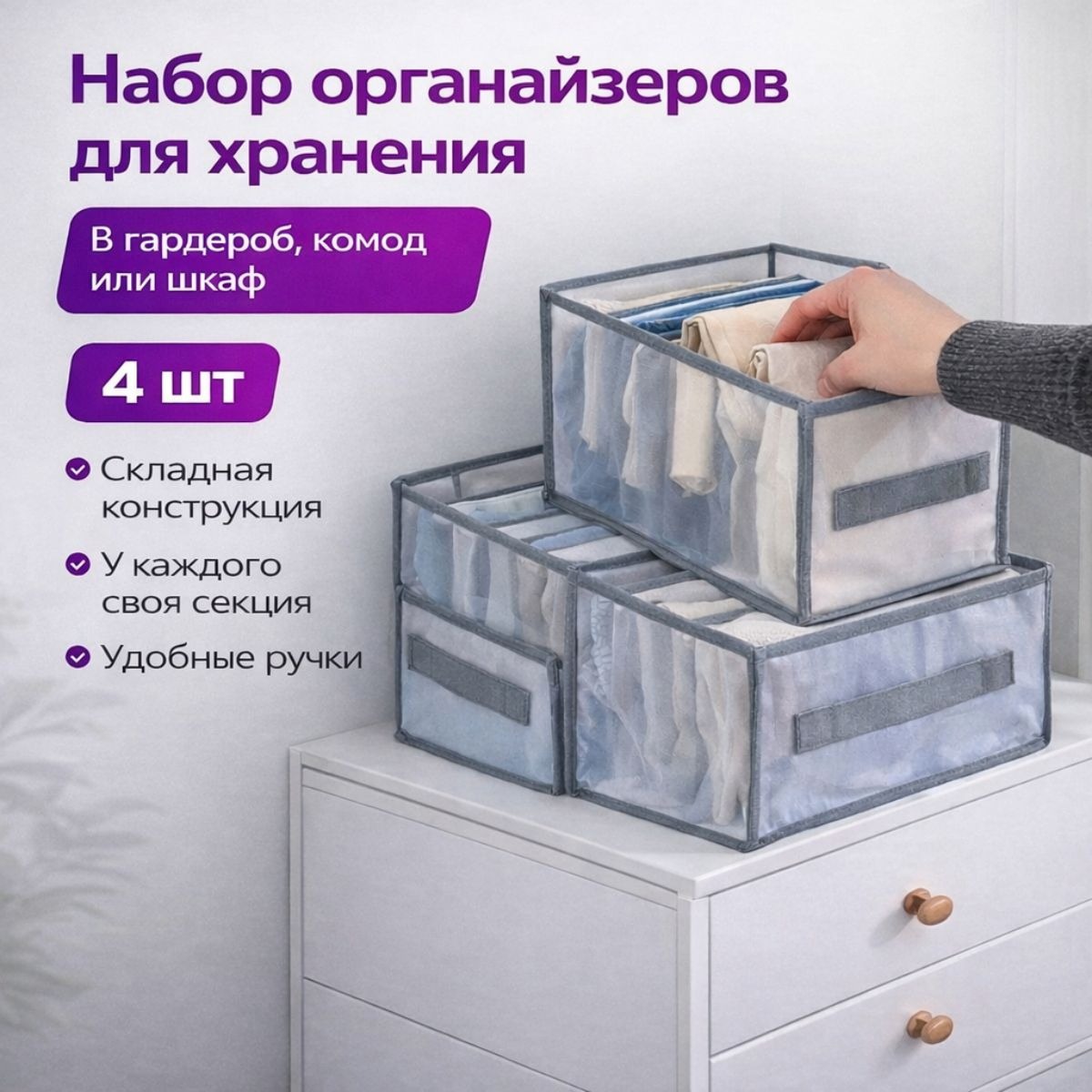 Практичный набор органайзеров Box For Clothes предназначен для удобного хранения одежды, нижнего белья и аксессуаров в шкафу или гардеробной. Благодаря прозрачной сетчатой структуре вещи хорошо видны, что позволяет быстро находить нужный предмет без лишнего беспорядка.