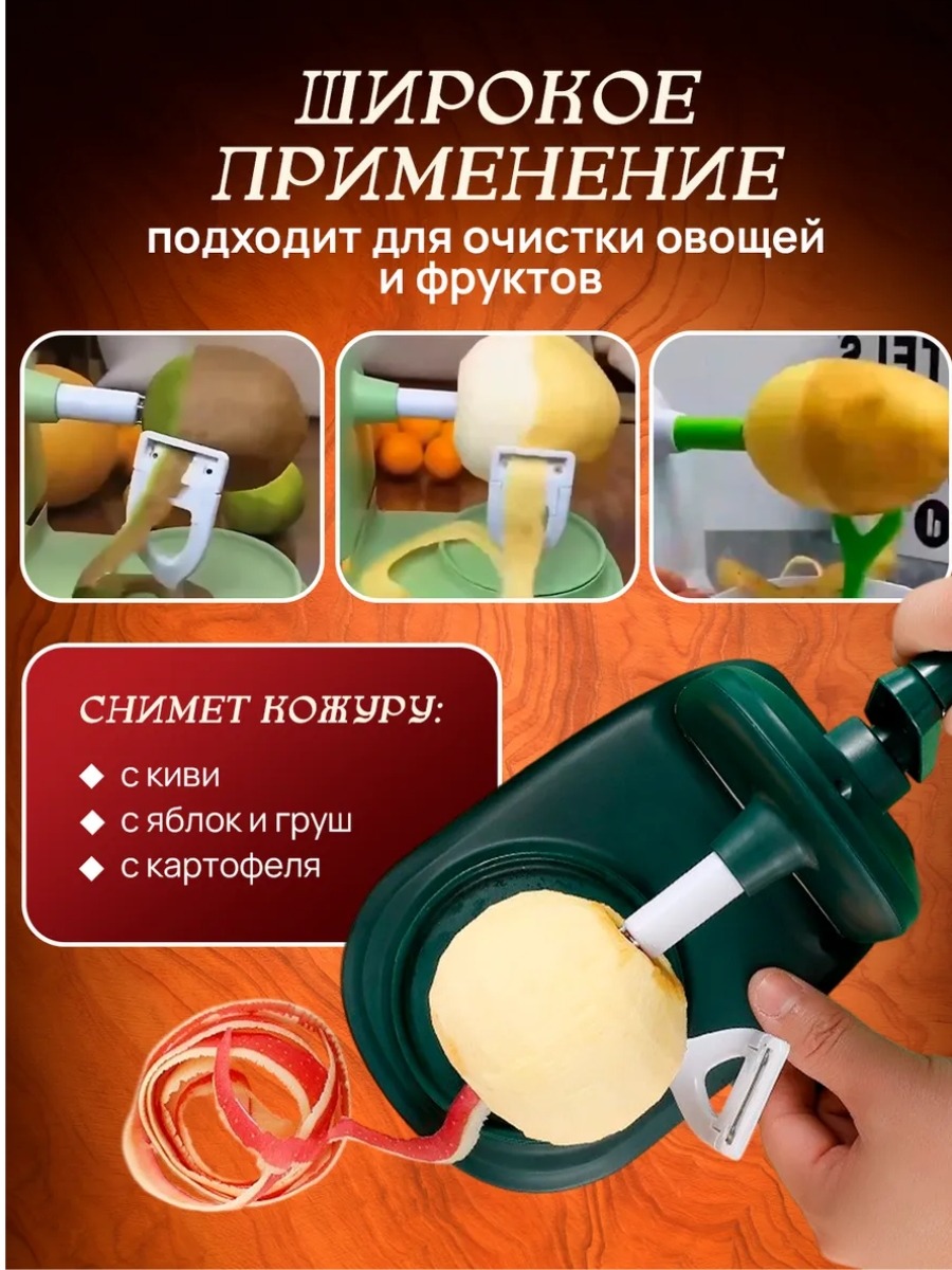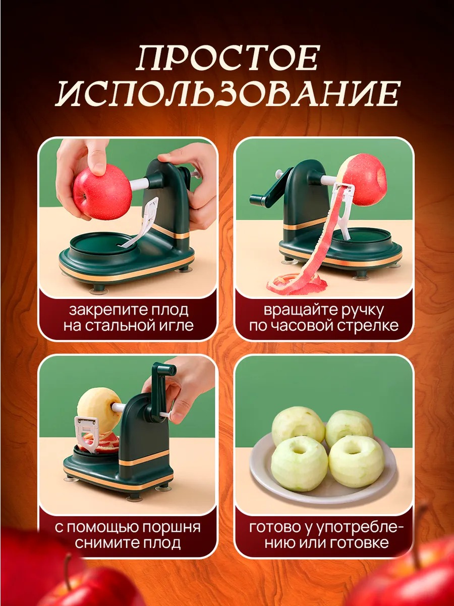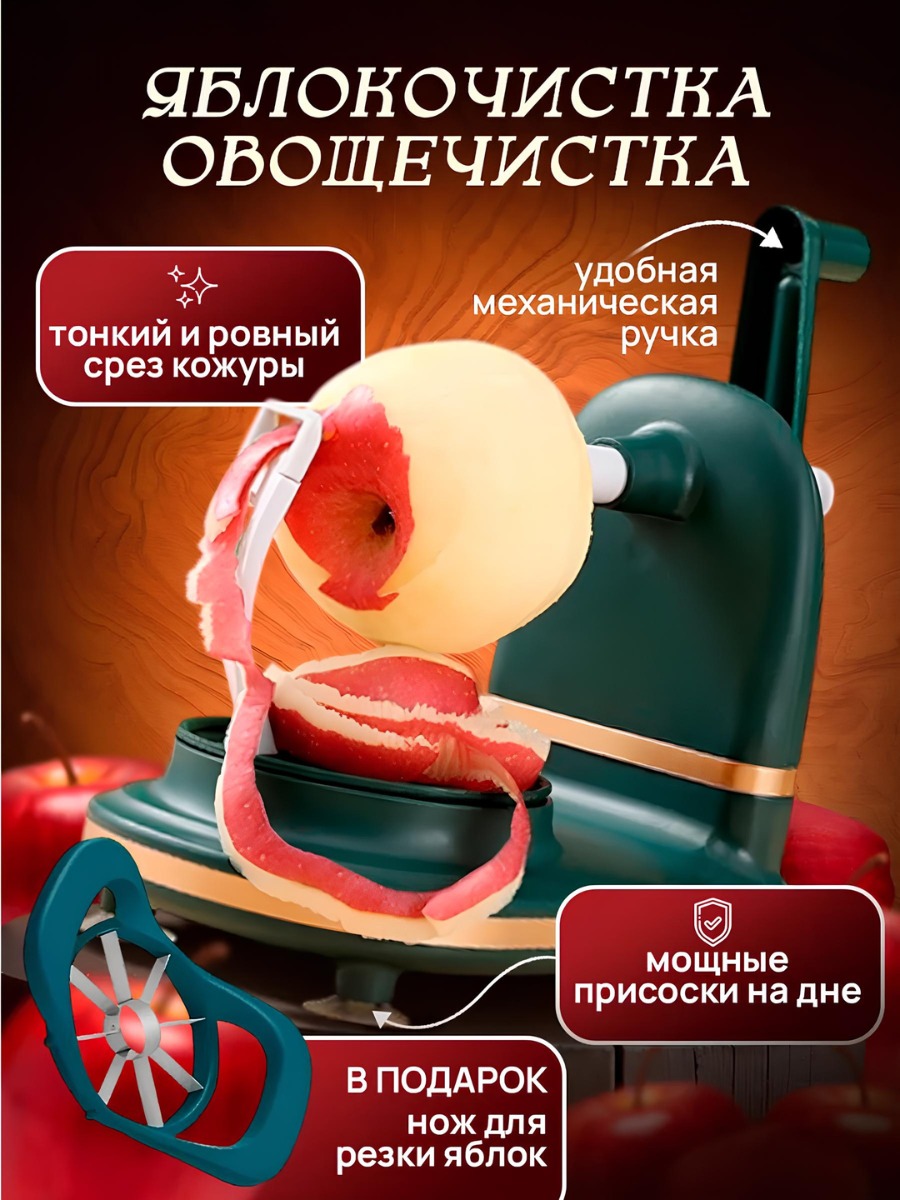 Механическая яблокочистка с ножом для нарезки — удобный кухонный аксессуар, который поможет быстро очистить яблоки от кожуры и удалить сердцевину. Устройство значительно упрощает подготовку фруктов и овощей, делая процесс быстрее, аккуратнее и безопаснее.