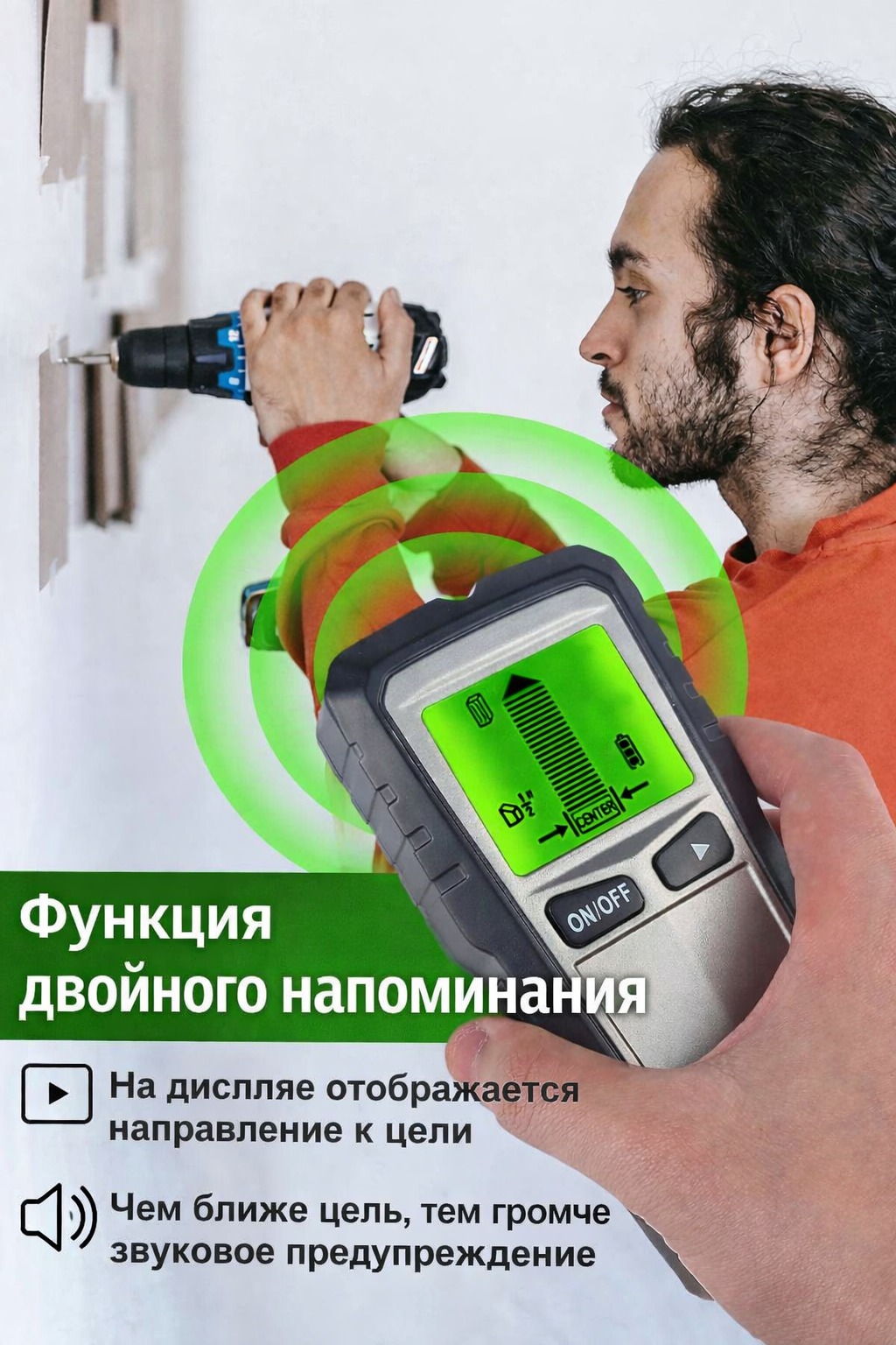 Детектор скрытой проводки TH-430 — универсальный прибор для поиска скрытой проводки, металлических и деревянных элементов в стенах, полах и потолках, а также арматуры в бетоне. Устройство подойдет для ремонта, монтажа, сверления и отделочных работ, когда важно заранее определить расположение кабеля, металла или деревянных конструкций.