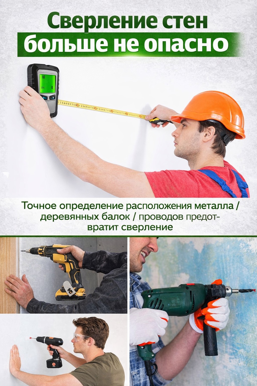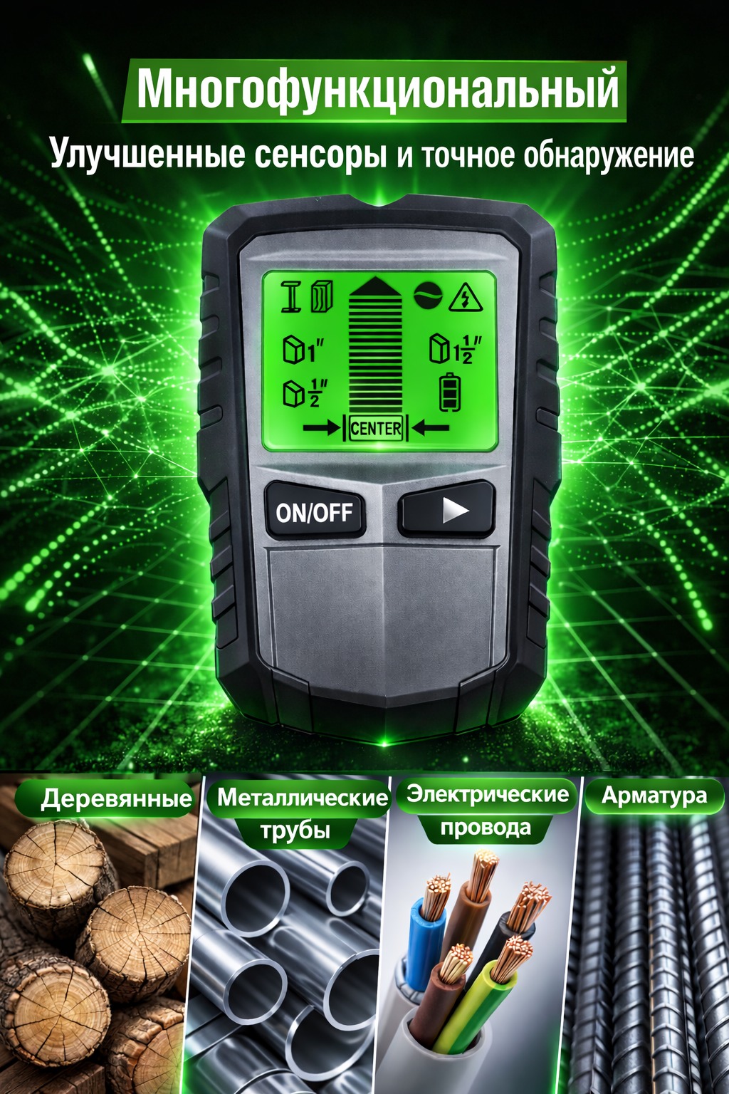 Обнаруживаемые материалы: металл / дерево / проводка