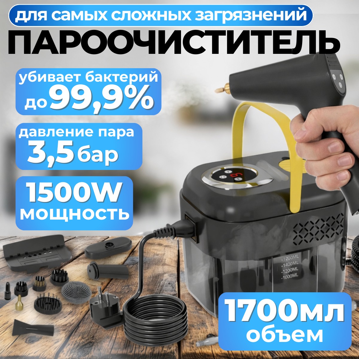 Мощный пароочиститель 1500W, 1700 мл, 3.5 бар с цифровым дисплеем и двойным контролем температуры