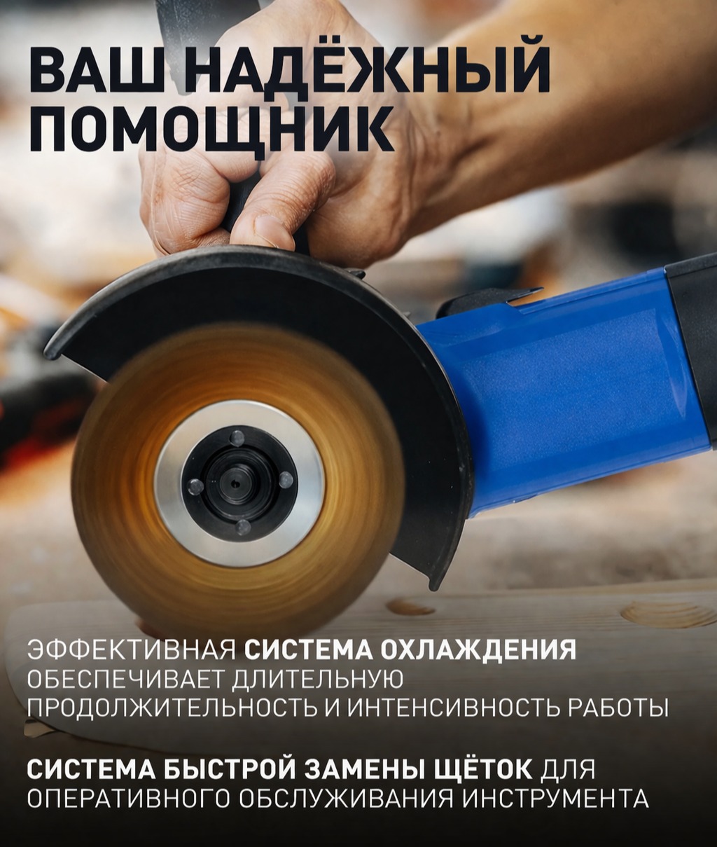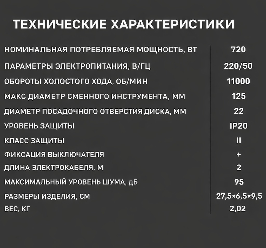 Угловая шлифовальная машина (болгарка) мощностью 720 Вт — универсальный инструмент для резки, шлифовки и зачистки различных материалов: металла, камня, плитки и других поверхностей. Высокая скорость вращения до 11000 об/мин обеспечивает быструю и эффективную работу даже при интенсивной нагрузке. Компактные размеры и эргономичный корпус позволяют удобно работать одной рукой, а фиксация кнопки включения повышает комфорт при длительном использовании. Отлично подходит как для бытовых задач, так и для профессионального применения.