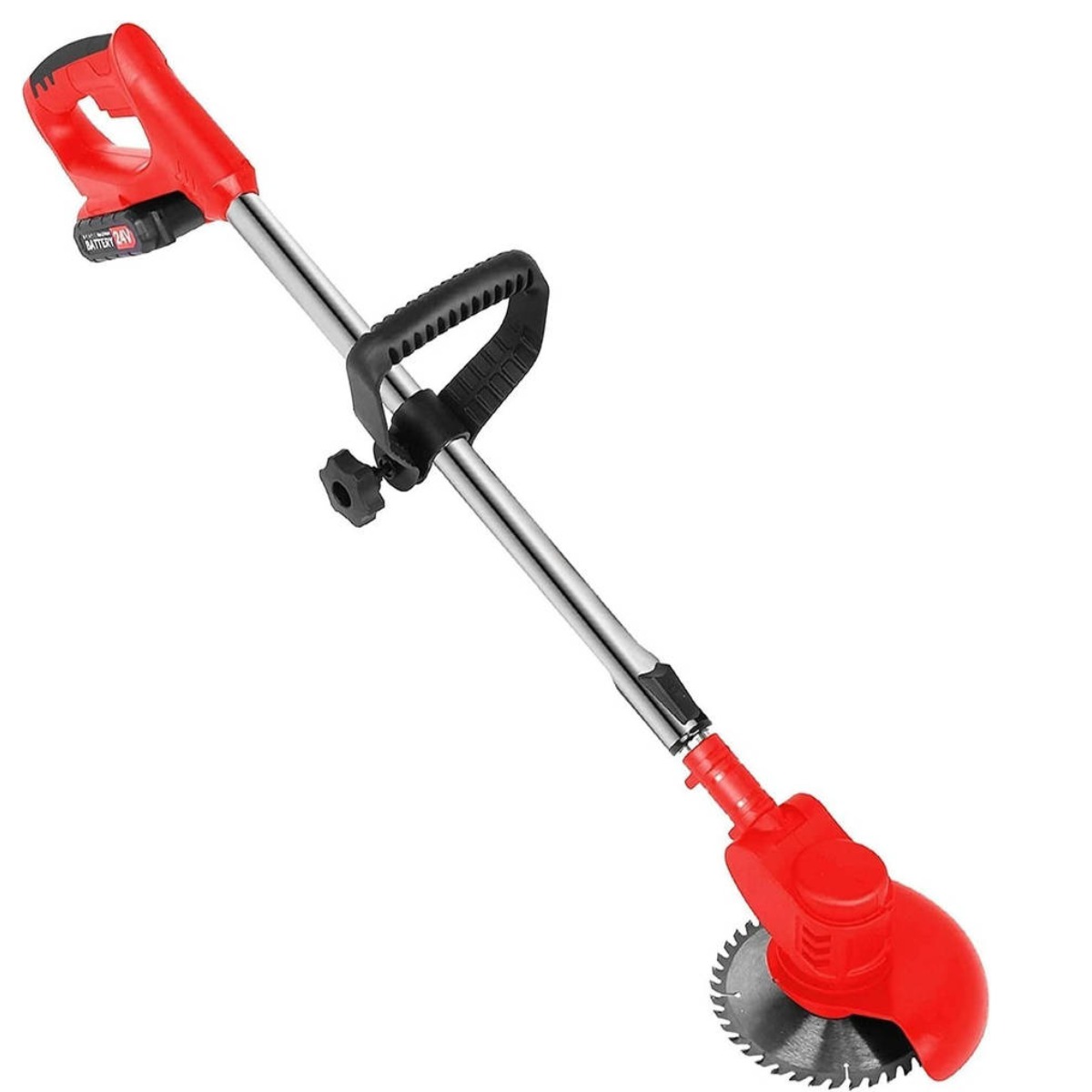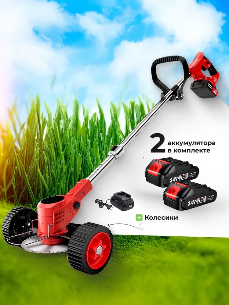 Аккумуляторный триммер для травы 24V с колесами, 3 насадками и телескопической ручкой