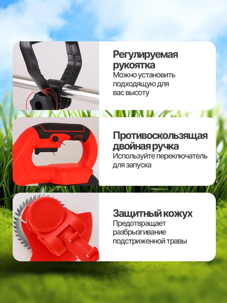 подходит для газона, сорняков, кромок и труднодоступных участков.