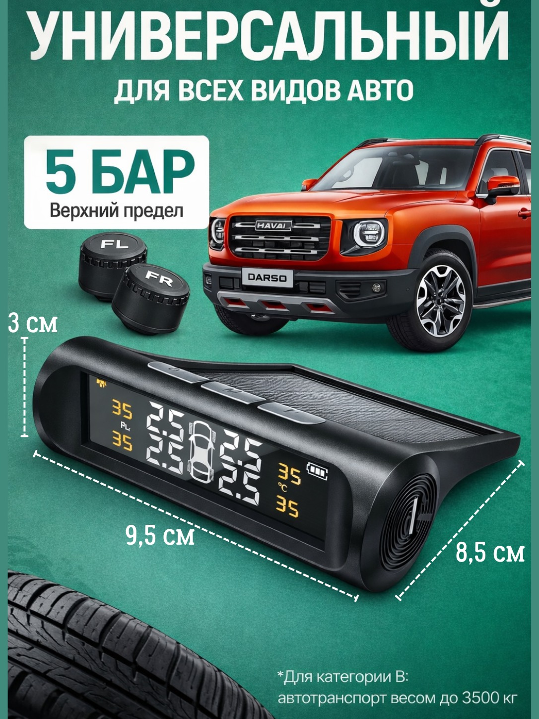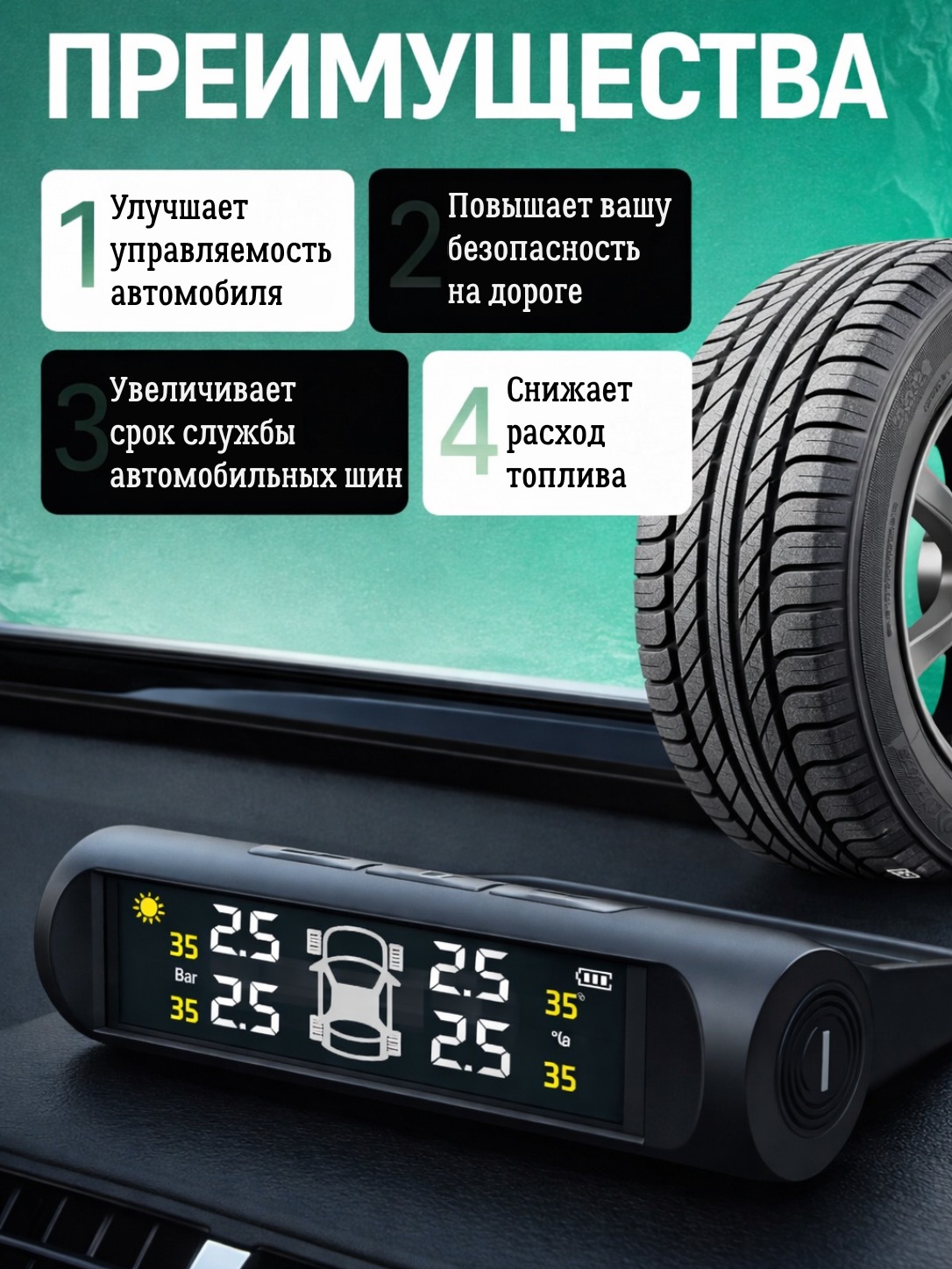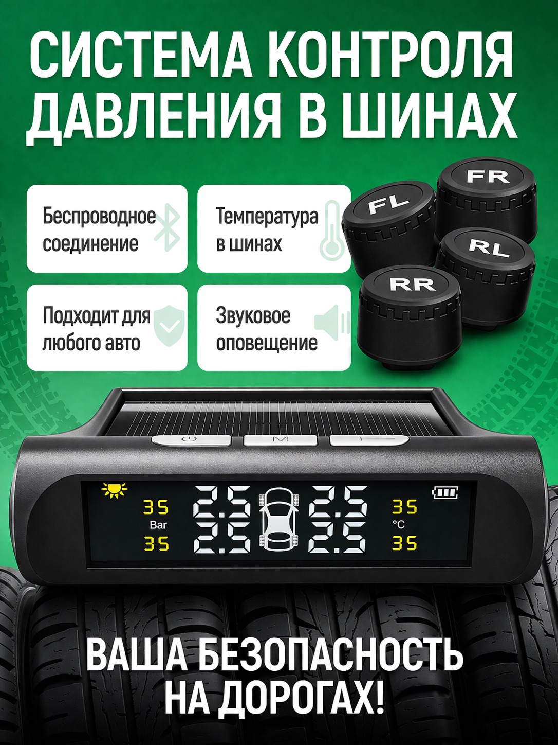 Универсальная система контроля давления в шинах TPMS Solar — это современное устройство для постоянного мониторинга состояния колес автомобиля в режиме реального времени. Система позволяет контролировать давление и температуру в каждой шине, что напрямую влияет на безопасность движения и управляемость автомобиля.