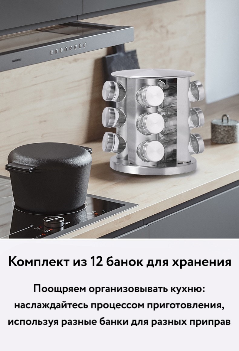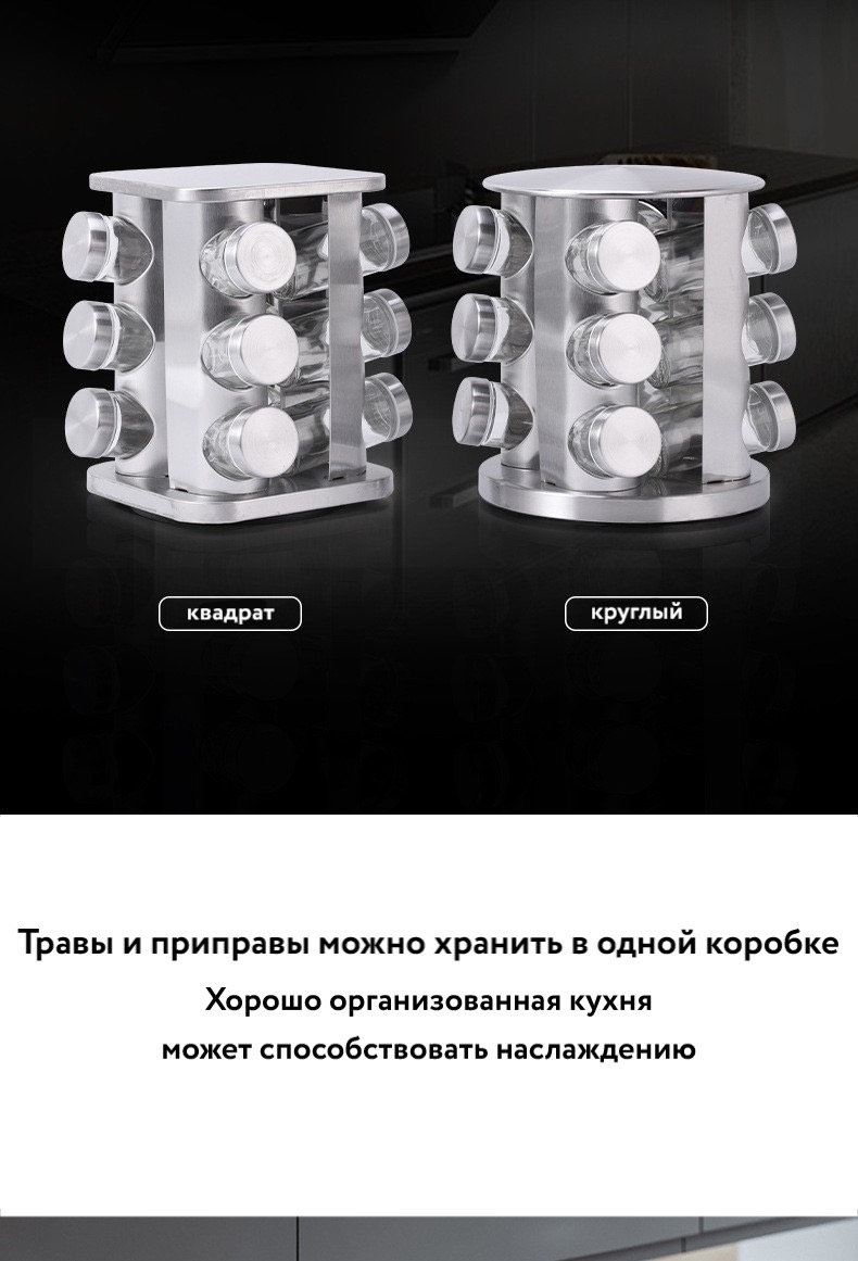 - вы сможете компактно распределить специи, сэкономить место и обеспечить порядок. Долговечная Spice Carousel отличается элегантным дизайном, поэтому отлично будет смотреться на каждой кухне.