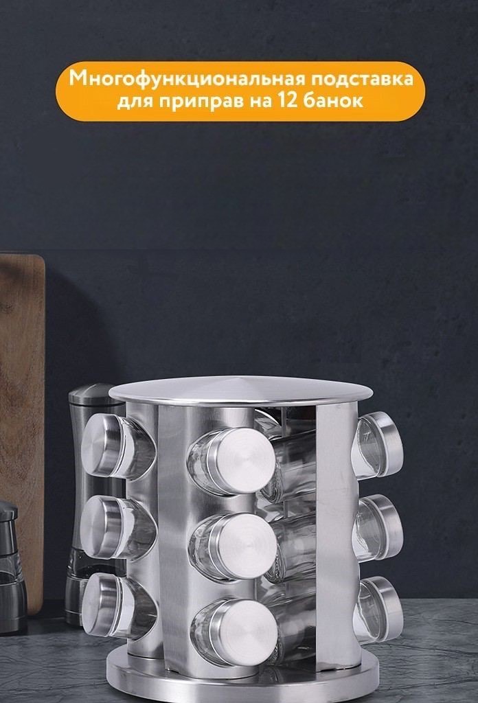 Набор для специй из нержавеющей стали. Карусель 12 в 1