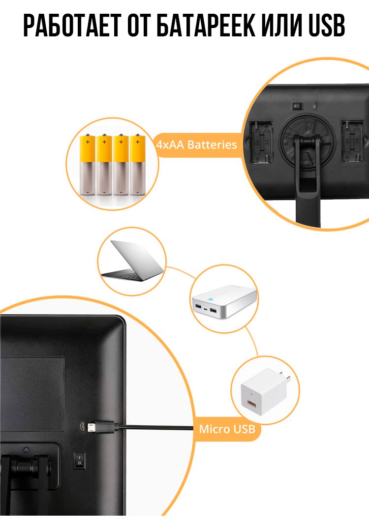 | Питание | Батарейки / USB |