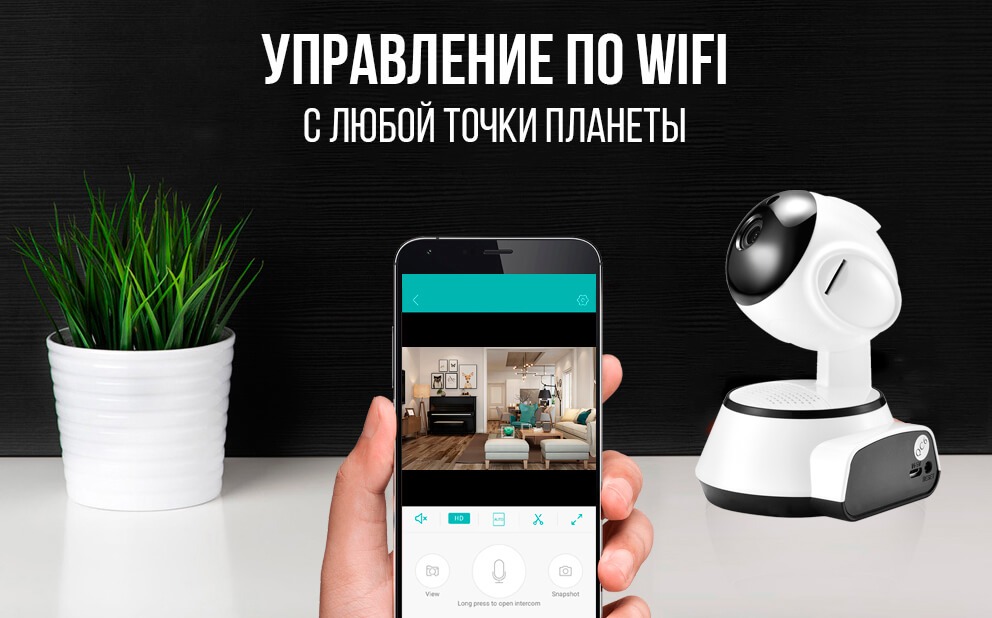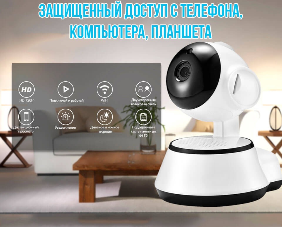 Поворотная сетевая IP-камера подключается к сети с помощью радиоканала Wi-Fi. Имеет функцию поворота. С помощью аудиосвязи вы сможете слышать все, что происходит в помещении.