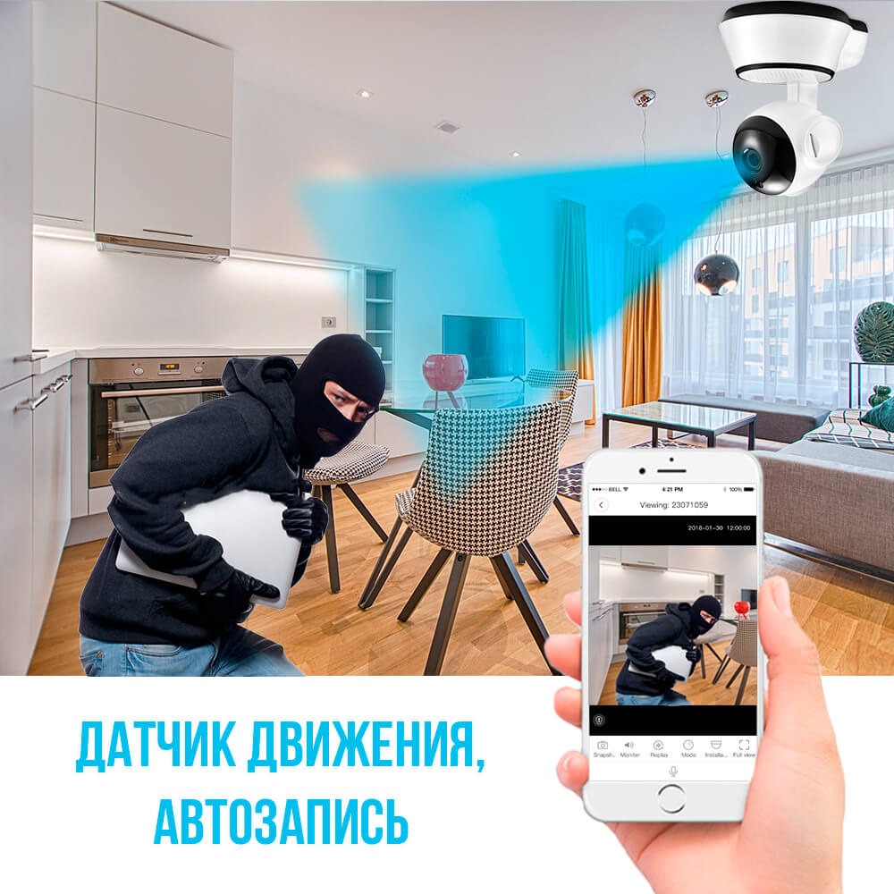Умная поворотная WiFi Камера с датчиками движения и ночной съемкой
