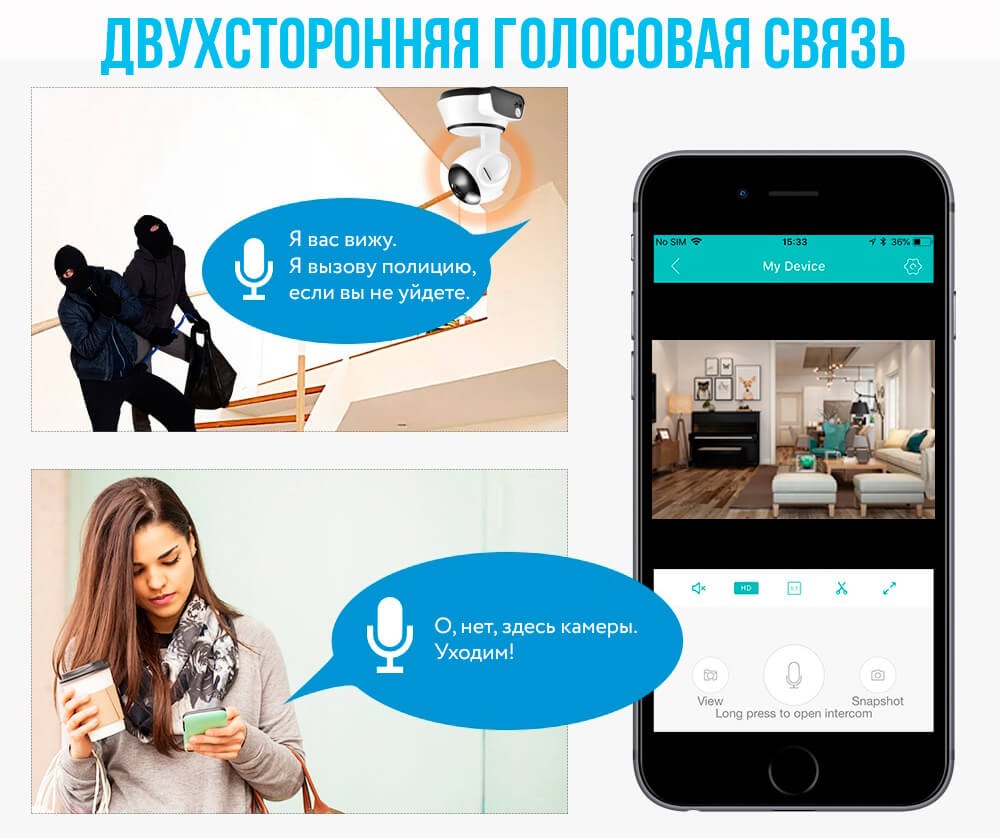 - Имеется двусторонняя аудиосвязь.