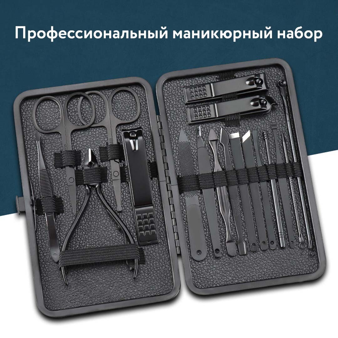 Набор для маникюра из 18 инструментов в футляре черный