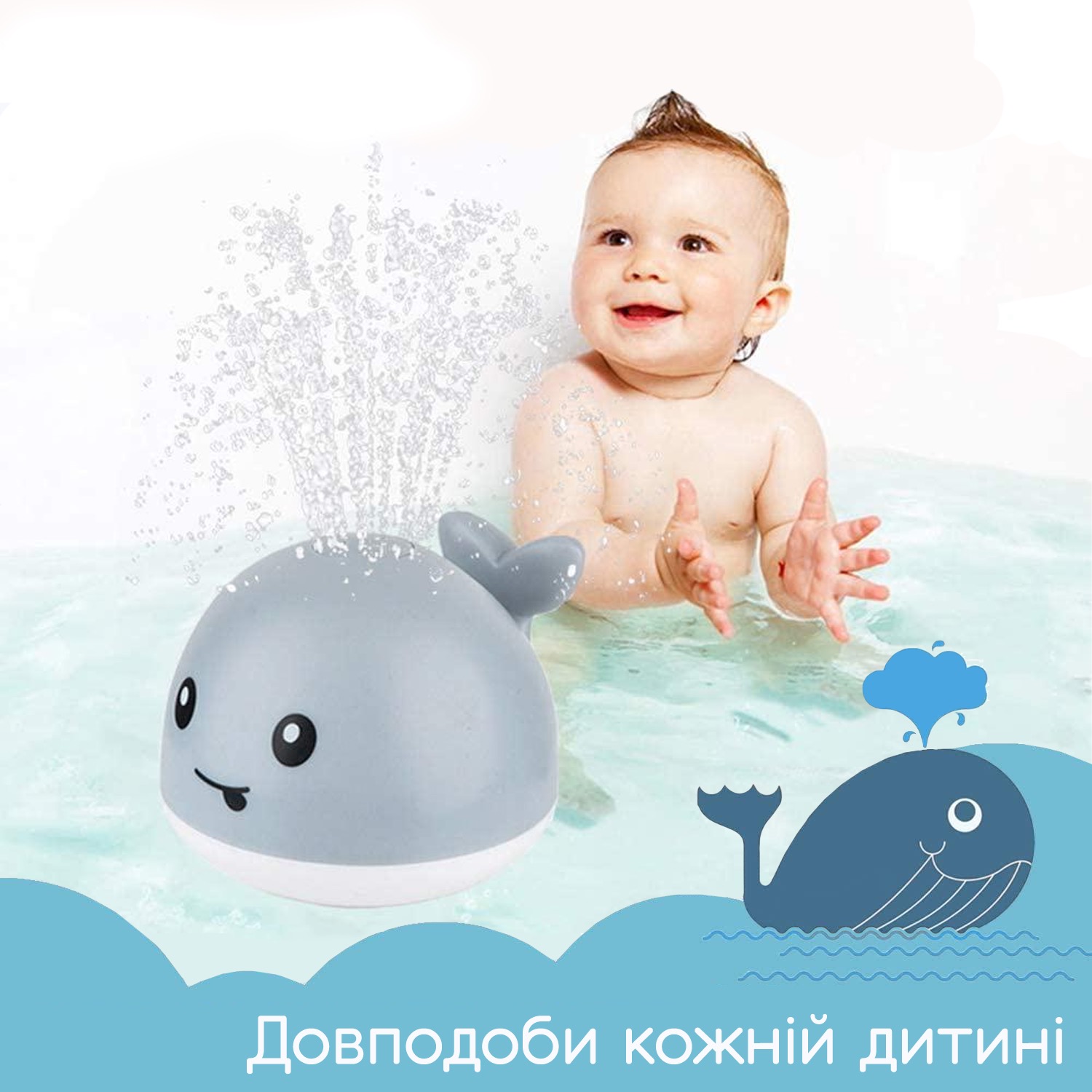 Креативна іграшка для ванни з розпилювачем води у формі кита. За допомогою цієї веселої іграшки, діти більше не плакатимуть, і почнуть любити приймати ванну.