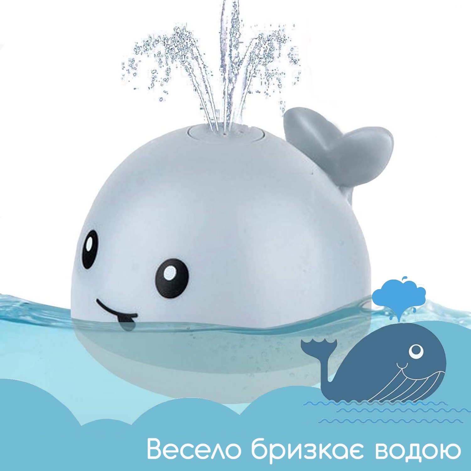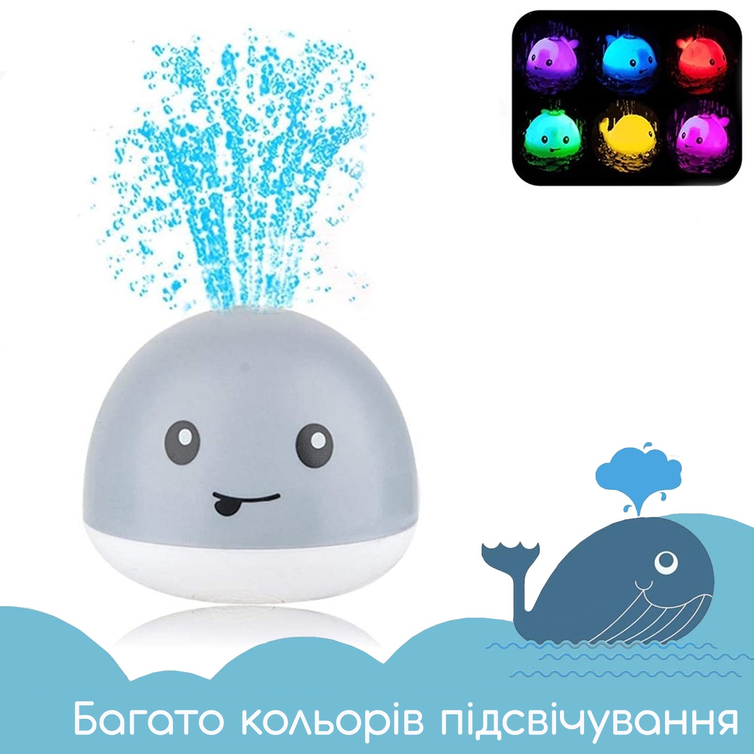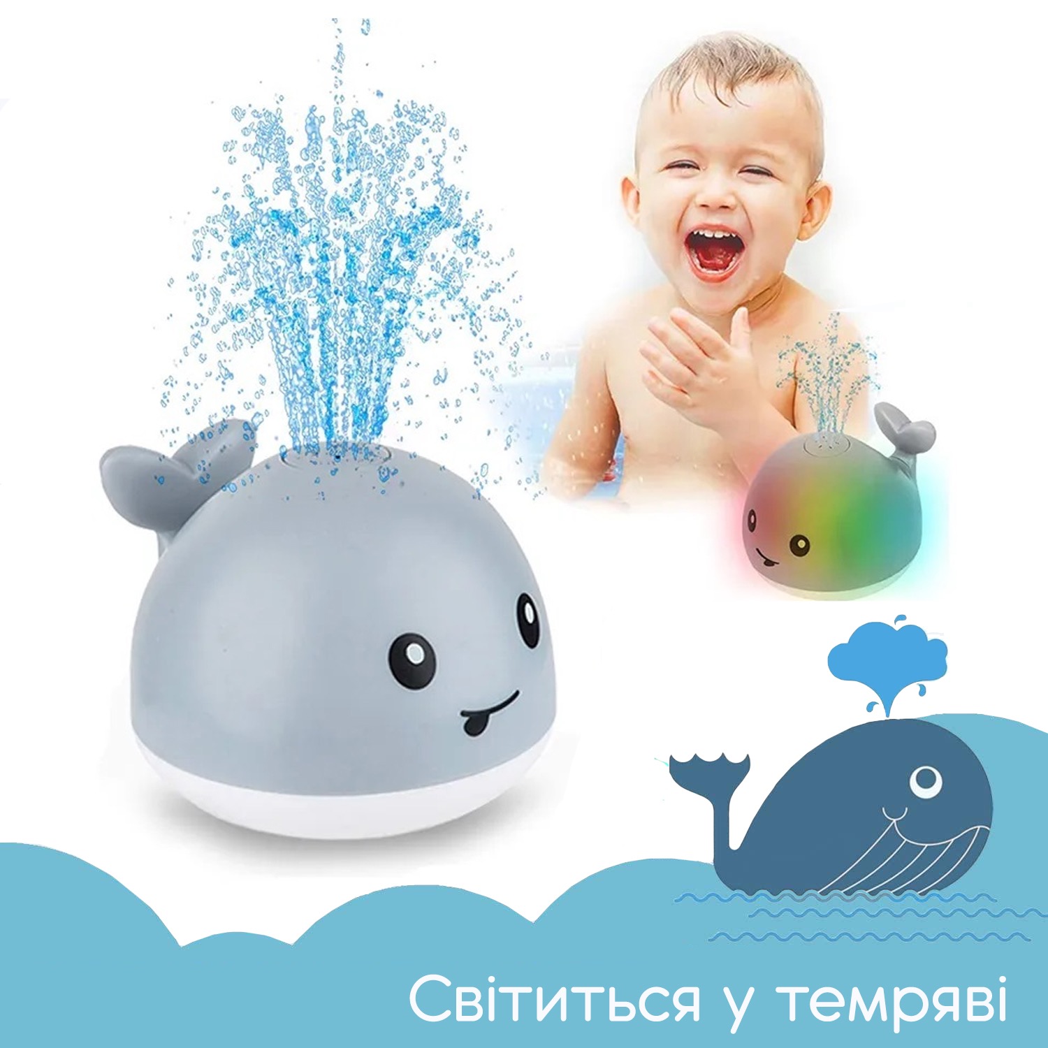 Дитяча іграшки для купання Кит. Індукційна іграшка з підсвічуванням та фонтаном
