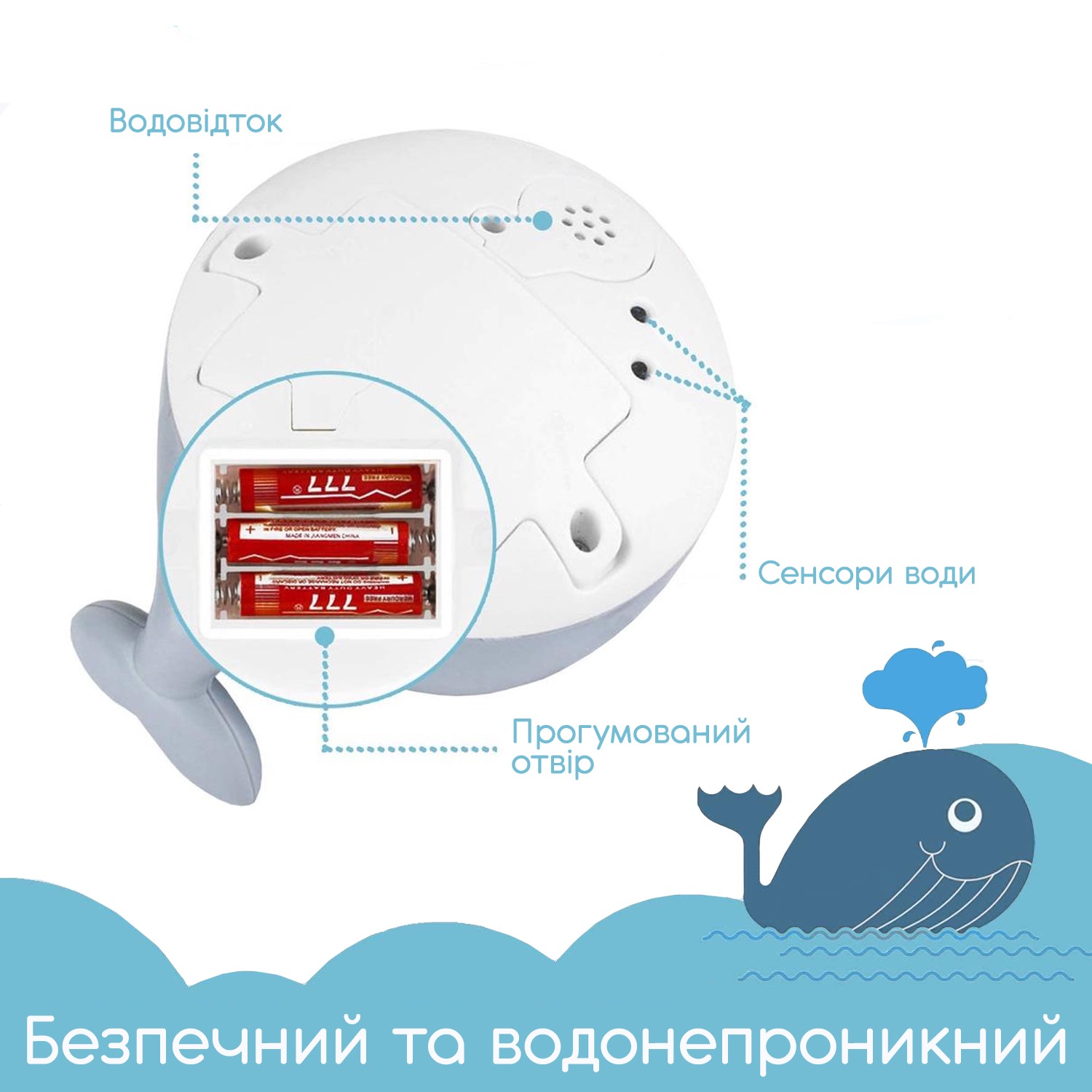 Урізноманітнюйте свій арсенал іграшок для купання таким дивовижним інтерактивним фонтанчиком у вигляді кита. Розважайте та розвивайте дітей під час купання!